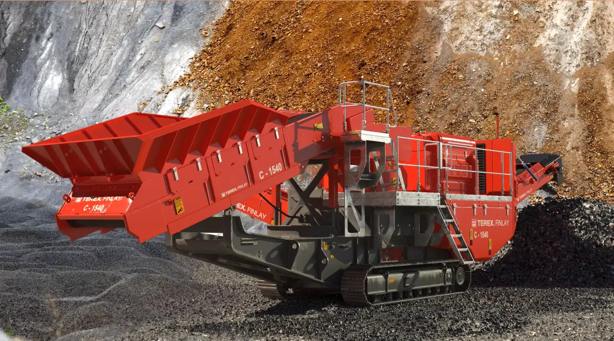 Terex Finlay C1540 Mobile Cone Crusher Machine red mining and roadwork mobile mechanism.