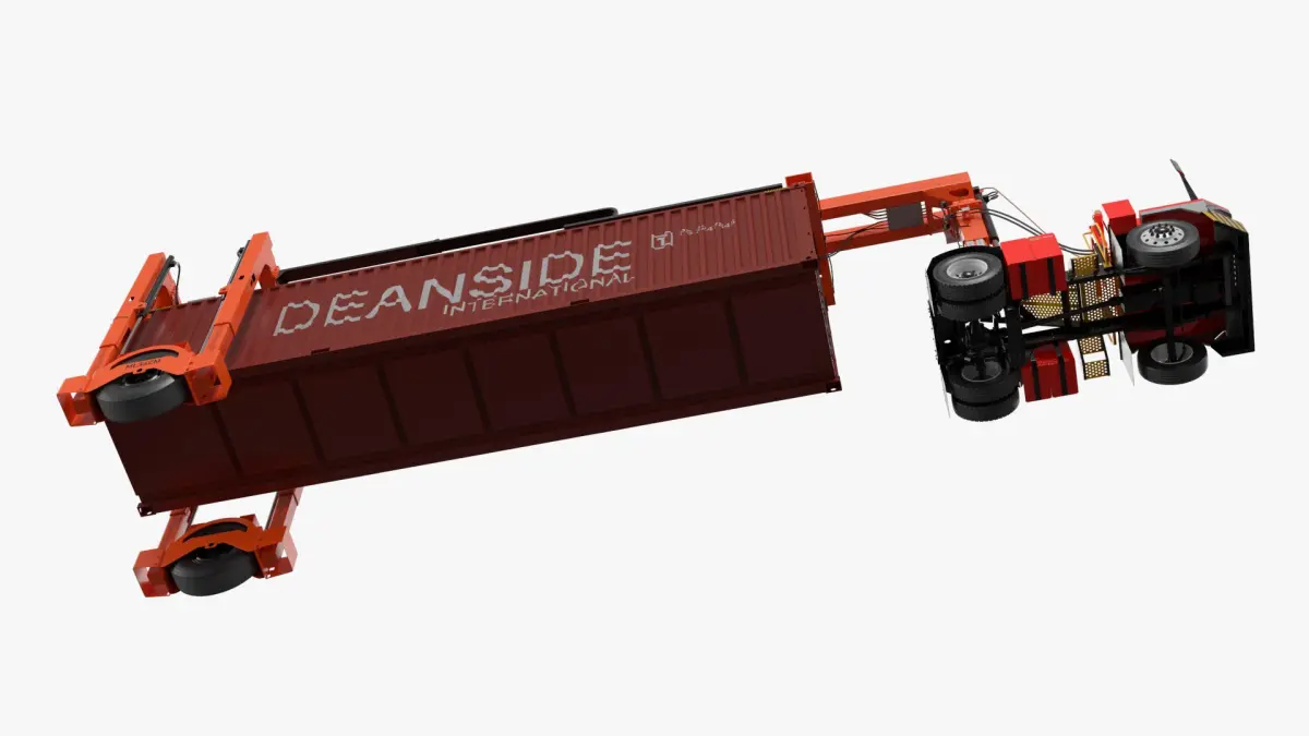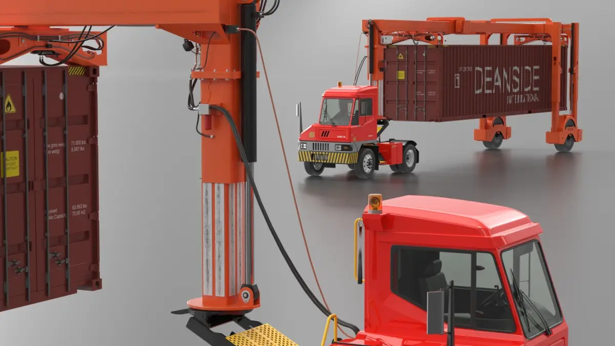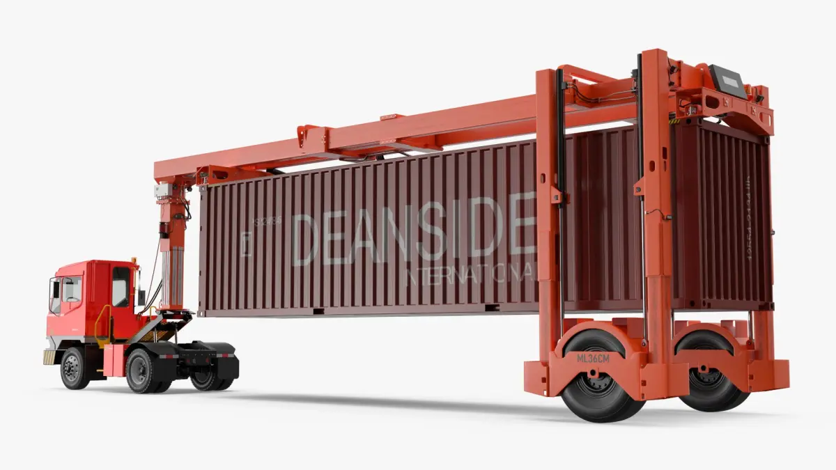 This is a type of electric yard vehicle with hydraulic systems for moving and lifting containers. It may come with a hydraulic yard container frame, lift trailer, or straddle-type frame. Used in intermodal transport, it simplifies trailer handling in terminal and container yard environments.