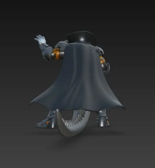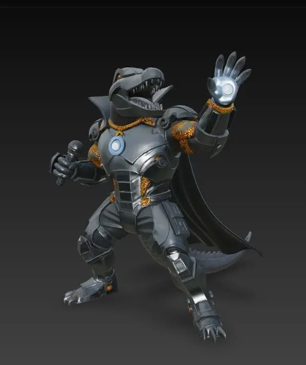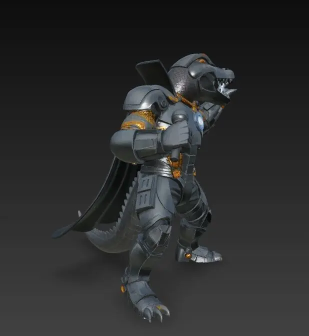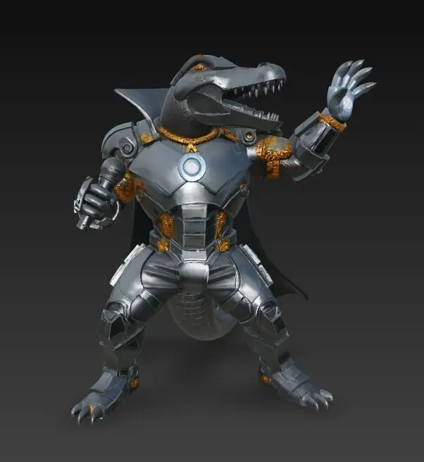 This futuristic 3D print model re-imagines a mighty crocodile in Terminator-inspired metal armor as a stage-dominant rock icon. With a microphone in one hand and an energy-charged fist in the other, the figure fuses destructive power with show-stopping charisma. A matte-gray body, gold plating, and a glowing blue chest core create striking contrast while retaining crisp detail for post-print painting. Can be printed on full-color 3D printers.