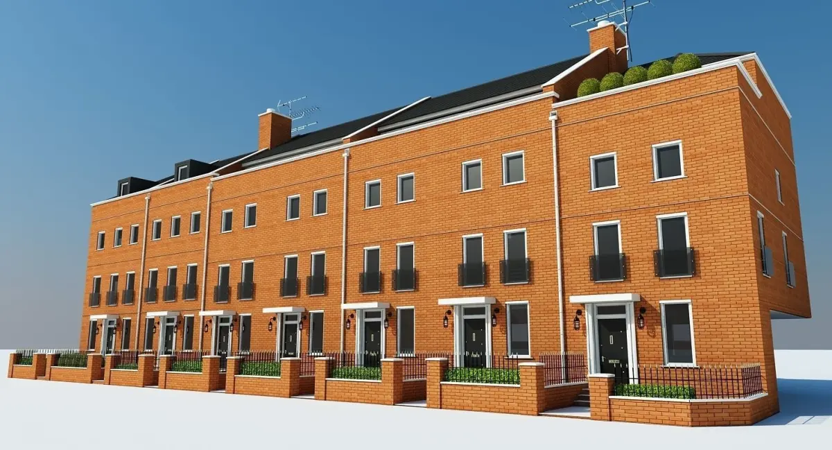 Detailed 3D model of a residential / commercial building block.