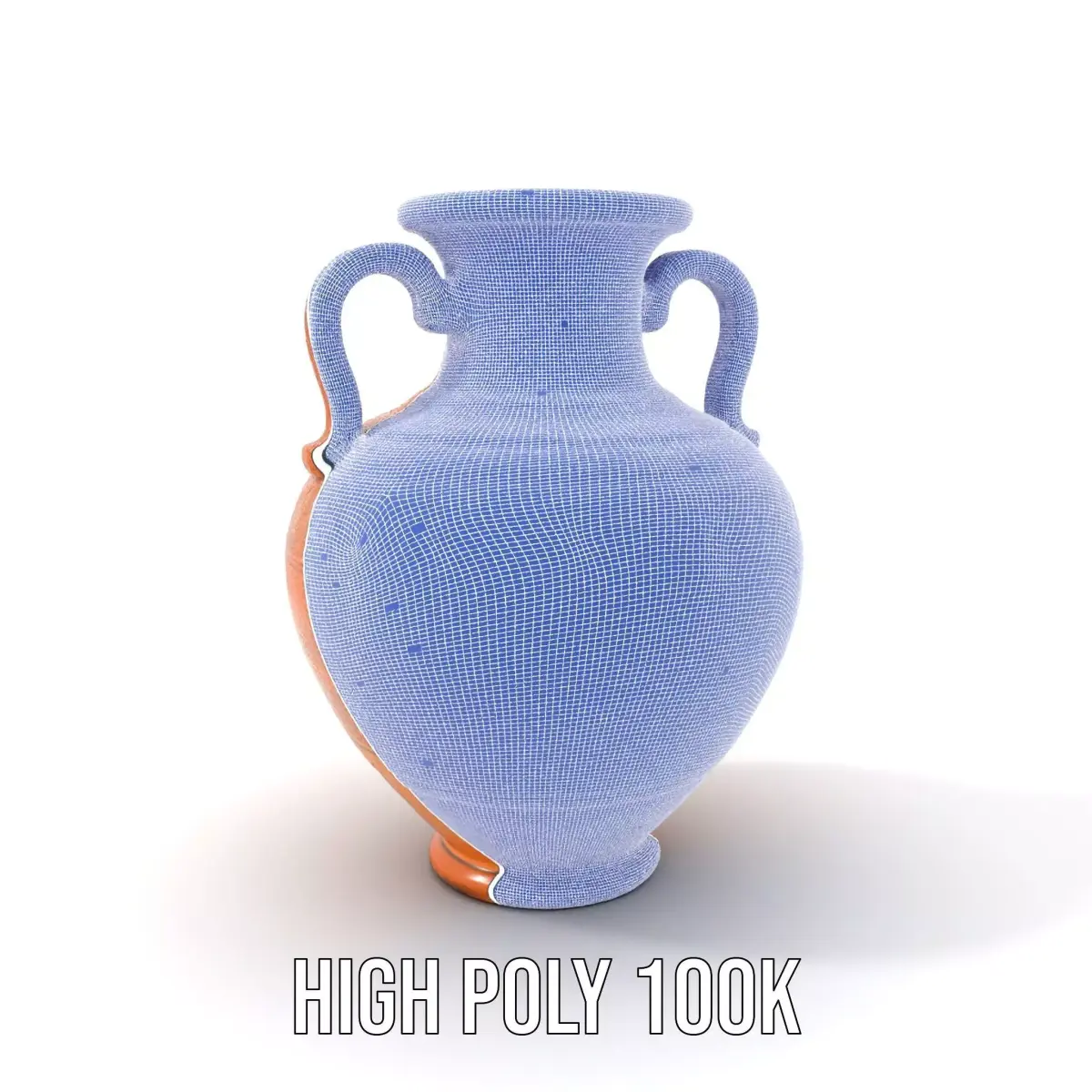 The Terracotta Amphora model pack offers a detailed and authentic representation of a classic ancient Greek vase, perfect for historical scenes, museum recreations, or period movies. Each model has 3 levels of detail: low-poly (1000 triangles for mobile), middle-poly (10,000 triangles for environment), and high-poly (100,000 triangles), which allows for the use of this model in production rendering (such as 3ds Max, Maya, Cinema4D, Blender, Vray/Corona/Cycles and all other), game engines (Unity and Unreal compatible), and interactive presentations, providing a choice of detail based on the LOD System principle. The model's textures are PBR, Diffuse, NormalMap, and reflection/roughness/metallic, which are suitable for any modern rendering engine. All models are accurately unwrapped and have no overlapping UV. All textures are 4096*4096 in size. Please like and leave a comment if you enjoyed the model.