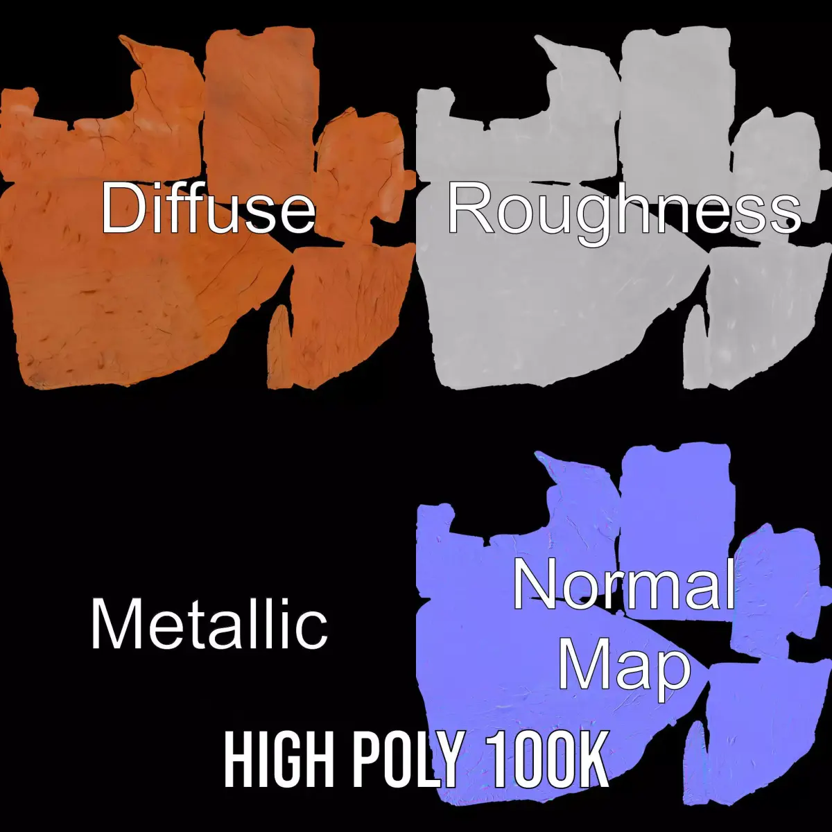This 3D Terracotta Boulder model pack offers a realistic and versatile rock structure, perfect for game environments, architectural visualization, and natural scene simulations. With its warm terracotta hue and rugged texture, it seamlessly fits into desert landscapes or artistic renderings. Each model has 3 levels of detail: low-poly (1000 triangles for mobile), middle-poly (10,000 triangles for environment), and high-poly (100,000 triangles), which allows for the use of this model in production rendering (such as 3ds Max, Maya, Cinema4D, Blender, Vray/Corona/Cycles, and others), game engines (Unity and Unreal compatible), and interactive presentations, providing a choice of detail based on the LOD System principle. The model's textures are PBR, including Diffuse, NormalMap, and reflection/roughness/metallic, making them suitable for any modern rendering engine. All models accurately unwrapped with no overlapping UV. Textures are 4096*4096 in size. Perfect for outdoor settings, VR experiences, or as a striking decorative element. Please like and leave a comment if you enjoy this model.