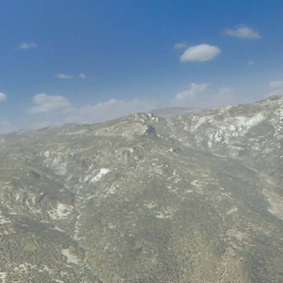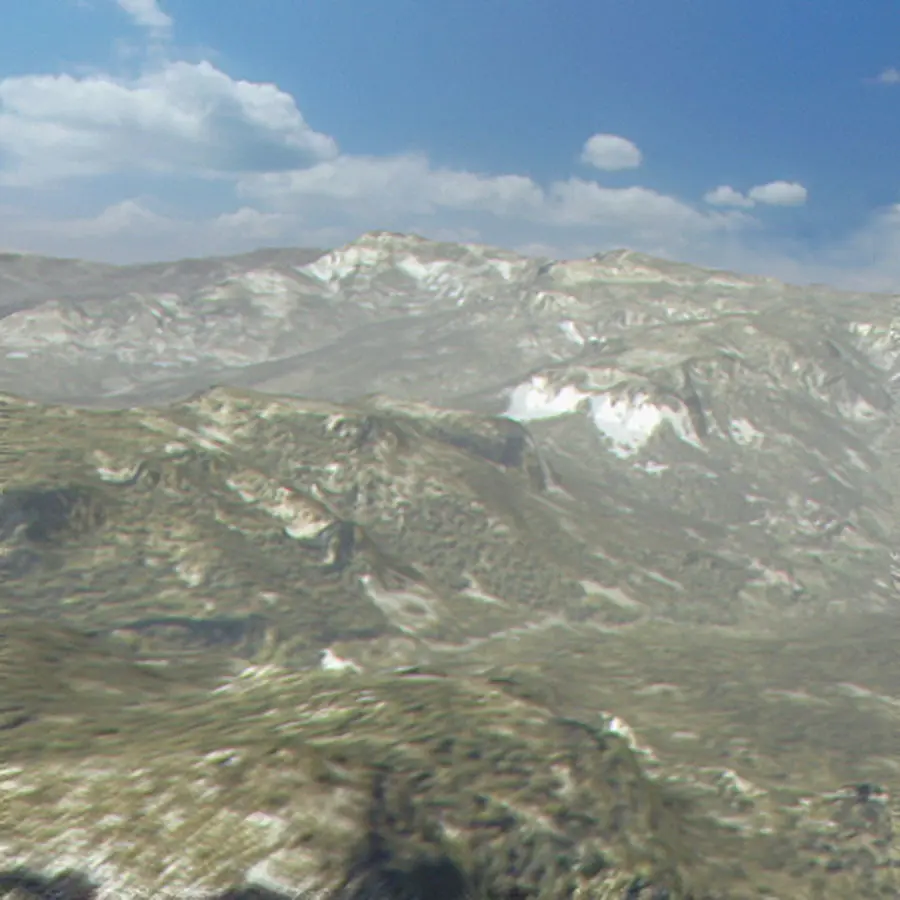 This scene is composed of four 2km x 2km terrain objects that are seamlessly tileable.