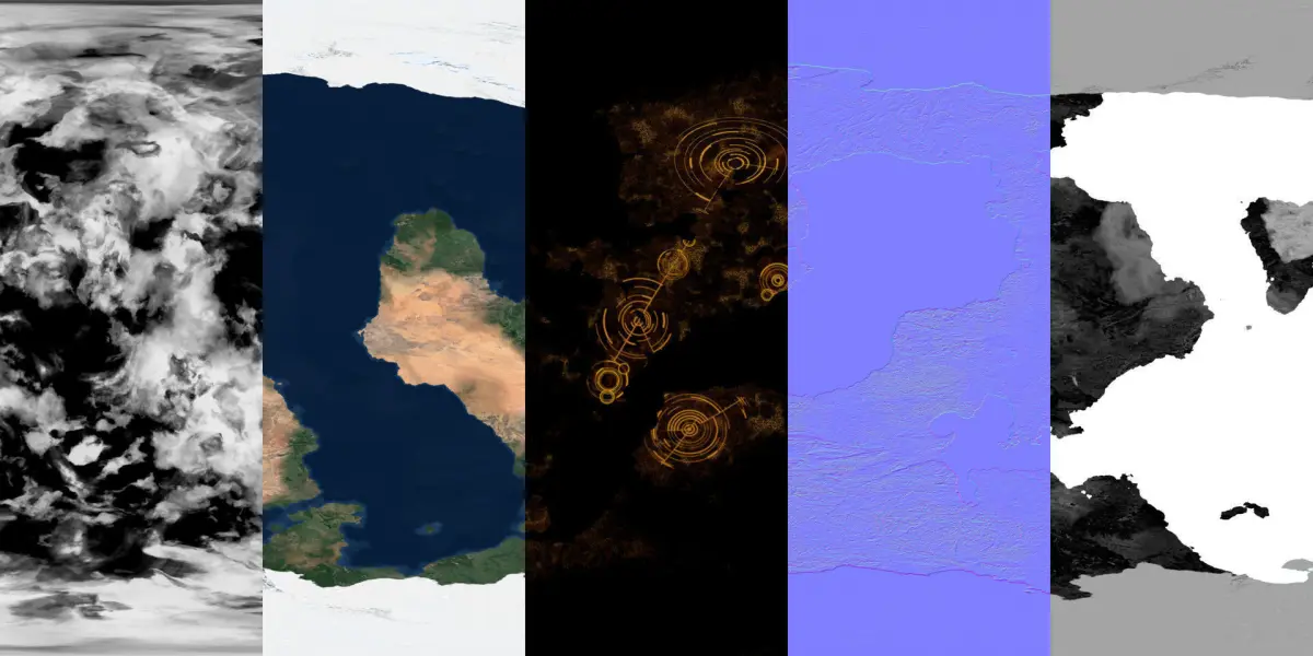 8,000 x 4,000 seamless, equirectangular planet texture of a generic terran-like planet. Includes dedicated diffuse, bump, specular, cloud, and light maps all generated using Blender and Gimp. Two different light maps were created to resemble different kinds of planet population: urban and rural. These can be used individually or combined for varied lighting effects.