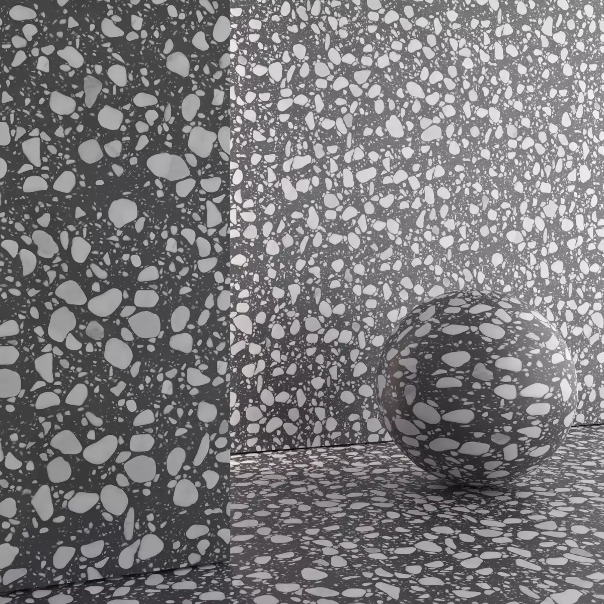 4 seamless Terrazzo textures + 8 PBR materials (glossy and matte) + 3D models of tiles of different sizes: