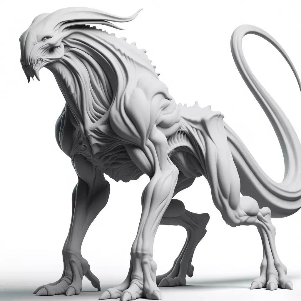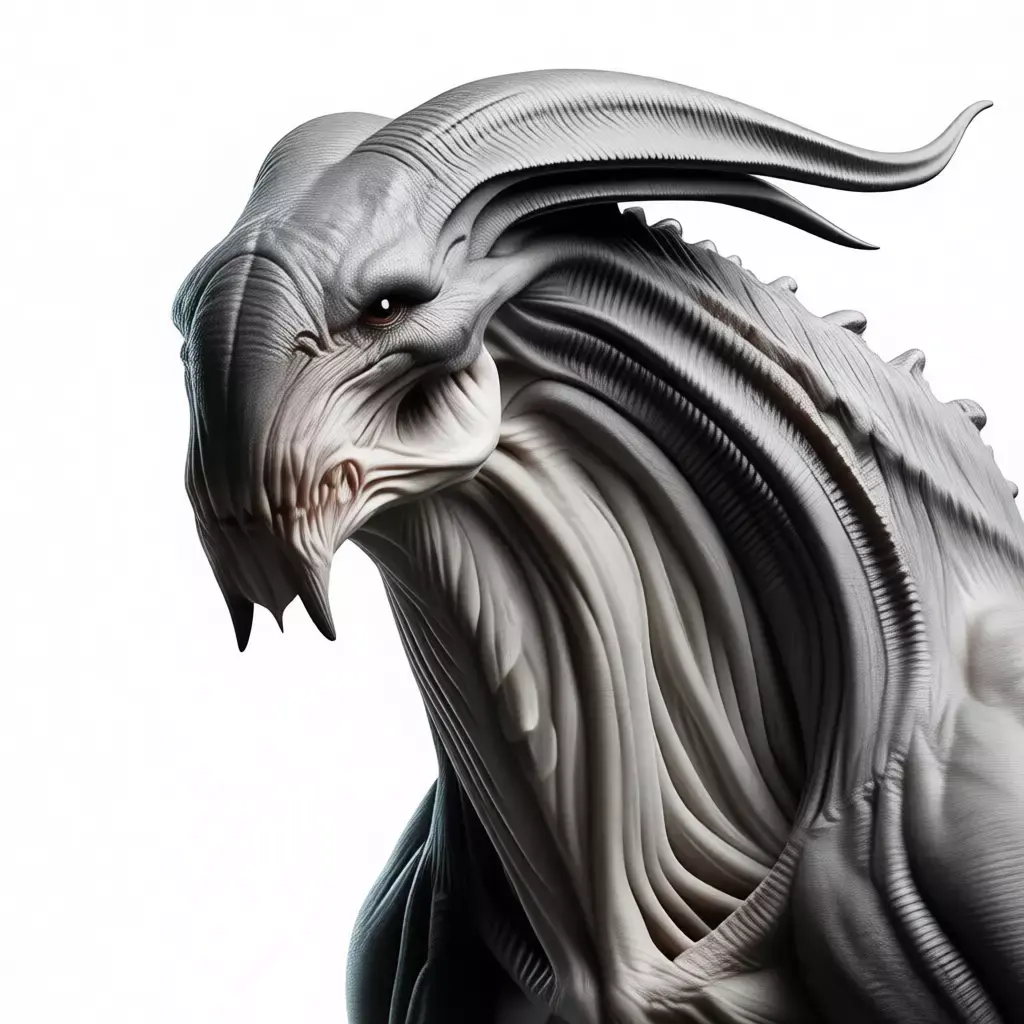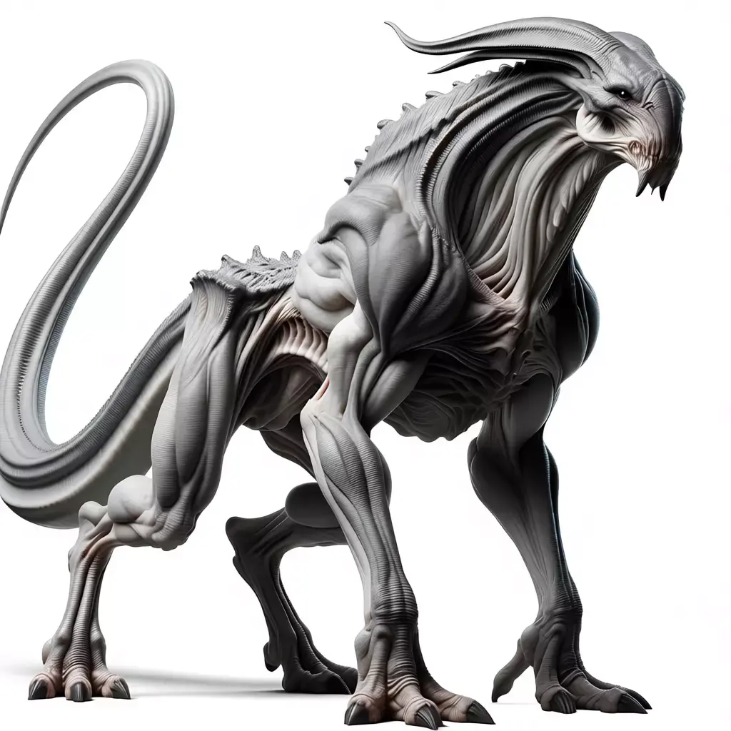 This is not merely a digital illustration; it is a meticulously crafted, hyper-realistic 3D asset that embodies the very essence of a nightmarish, otherworldly predator, rendered with such astonishing fidelity and artistic mastery that it seems poised to lunge from the screen and into the real world, presented against a seamless, pure white background that serves to isolate the creature and elevate it to the status of a terrifying specimen, making it an ideal centerpiece for any creative project requiring a symbol of fear, danger, and the unknown horrors that may lurk beyond our understanding. The creature itself is a grotesque masterpiece of biomechanical design, its form sculpted from a complex interplay of sinewy muscle, exposed bone, and chitinous plates, all rendered in a palette of sickly grays, pale fleshy tones, and deep, shadowy blacks that evoke a sense of decay, disease, and unnatural life. Its entire body is covered in a dense, wrinkled hide that appears both tough and supple, with intricate folds and ridges that suggest a complex internal anatomy and a constant state of tension and readiness for violence. This unsettling texture is contrasted dramatically with the smooth, glossy surfaces of its sharp, black claws and the hard, segmented plates that run along its spine and tail, adding a touch of visual depth and a sense of predatory efficiency. The most immediately arresting feature is its head, a nightmare of jagged angles and menacing features, featuring a long, curved beak-like snout filled with rows of razor-sharp teeth, a pair of small, beady eyes that seem to glow with malevolent intelligence, and a set of large, horn-like protrusions that sweep back from its brow, adding to its intimidating, demonic appearance. The neck is thick and muscular, leading down to a broad, powerful torso that houses what appears to be a massive, pulsating heart or digestive organ, indicated by the visible veins and tendons that snake across its surface. The arms are thick and powerful, ending in large, articulated hands with multiple fingers tipped with long, curved claws, capable of grasping and rending flesh, while the legs are equally massive, terminating in wide, stable feet designed for maximum traction and stability during combat maneuvers. The entire creature is positioned in a dynamic, crouching pose, facing directly towards the viewer, which creates a strong sense of confrontation and intimidation, as if it is ready to pounce at a moment's notice. The lighting is expertly controlled, casting soft, realistic shadows beneath the creature that provide a sense of weight and presence on the ground, while the specular highlights on its glossy surfaces are perfectly rendered to mimic the reflection of a real-world environment, enhancing the perception of its premium materials and flawless finish. This level of photorealism makes the asset indistinguishable from a high-end concept photograph, offering unparalleled flexibility for designers, marketers, and content creators seeking to convey a message of terror, suspense, and the relentless pursuit of survival in the face of overwhelming odds. It is a powerful visual metaphor for the unknown dangers that may lie beyond our world, representing a world where humanity is not the apex predator but merely prey for these monstrous beings. Whether used in advertising campaigns for horror-themed products, promotional materials for science fiction films or video games, editorial content about extraterrestrial life, architectural visualizations of alien landscapes or space stations, or even as a standalone piece of digital art for collectors, this alien creature stands as a testament to human imagination and the enduring allure of the macabre. Its design is not just about function; it is a statement of dread, a declaration of a future where humanity must confront the terrifying reality of life beyond Earth, all wrapped in a package of undeniable power and appeal. The sheer quality of the rendering, from the subtle reflections in the skin to the precise detailing of the muscles and bones, speaks to the immense skill and dedication of the artist who created it, making it a valuable asset for any project that demands the highest standards of visual excellence and emotional impact. The image evokes a profound sense of fear and revulsion, inviting viewers to imagine the screech of its voice, the stench of its breath, and the feeling of standing in the presence of a creature that is both beautiful and terrifying, a true monster of the future. It is a vision of a world where the boundaries between man and beast blur, creating experiences that are both thrilling and deeply unsettling.