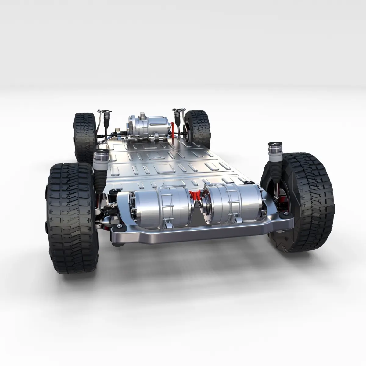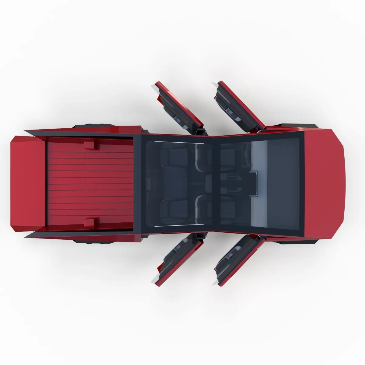 Tesla Cybertruck with full chassis (battery pack, 3 motor setup, brakes, linkages, suspension, steering) and a detailed interior 3d model rendered with Cycles in Blender, as per seen on attached images.