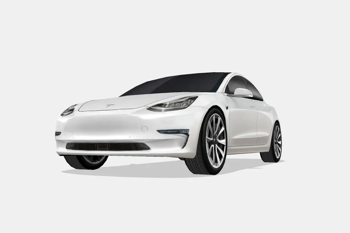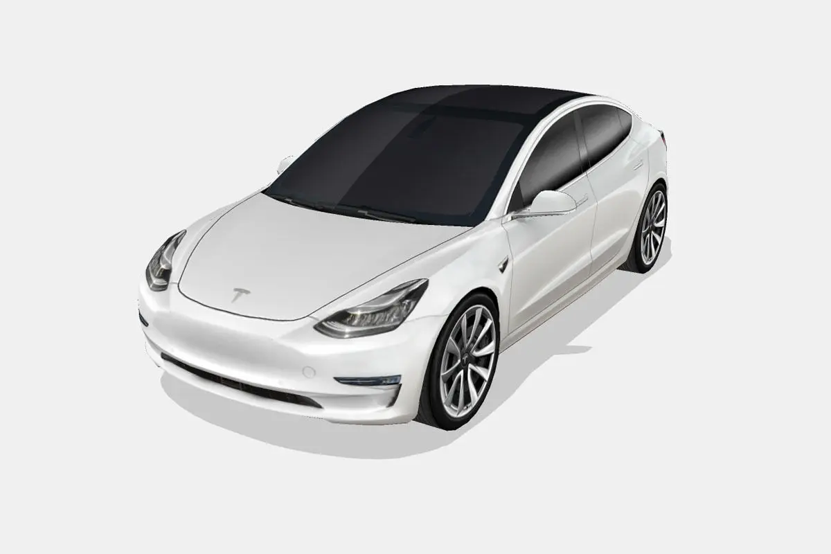 3d model of the 2018 Tesla Model 3, a luxury all-electric 4 doors fastback sedan, or compact executive car.