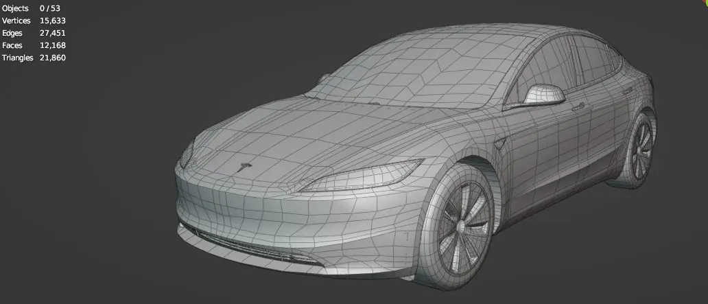 TESLA MODEL 3 2024 Exterior Only Game Ready 21K triOnly 21k triangles, best optmized for games and even web games also
