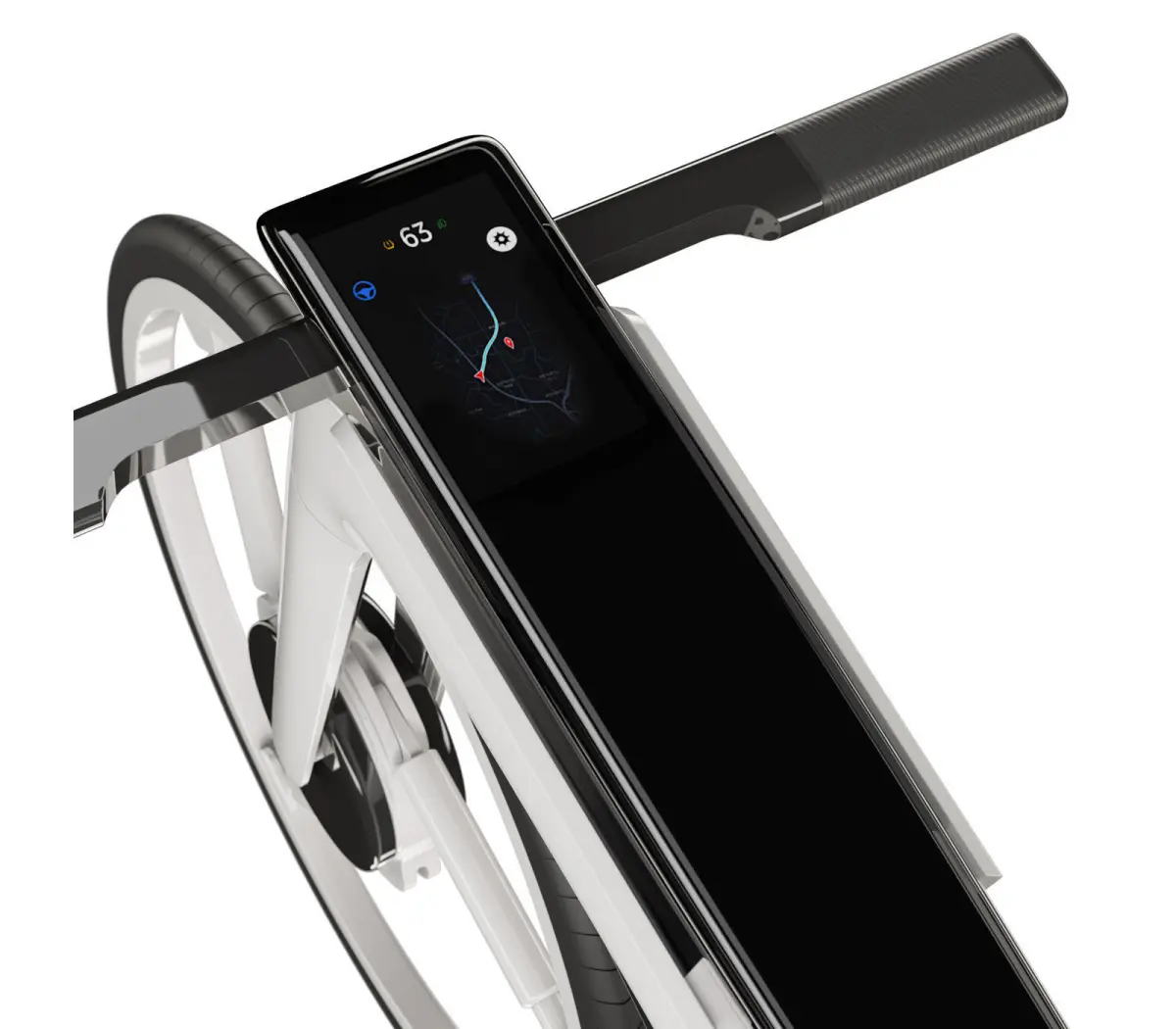 Combining the key advantages of bicycles and cars will accelerate the sustainability and efficiency of transportation in cities.Stacionary handlesdetect force.Wheel turns independently based on handle force input and autopilot sensor data.Two independent motors affroad the user power to get up any hill or out of dangerous situations.The bike has full autonomy to get the user out of harms way or guide them effortlessly to their destination.A simplified experiensAn integrated display makes it easy to navigate,control,and customize the bike.The force detecting solid state handelbars and footrests fold out from the body.