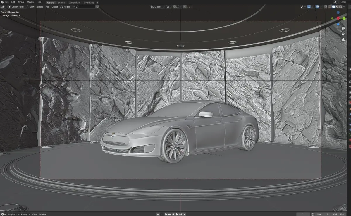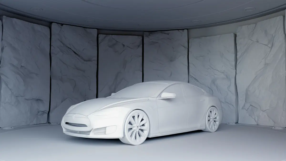 Tesla Model S + Rock Wall Location 3d model (.fbx - .obj - .blend)