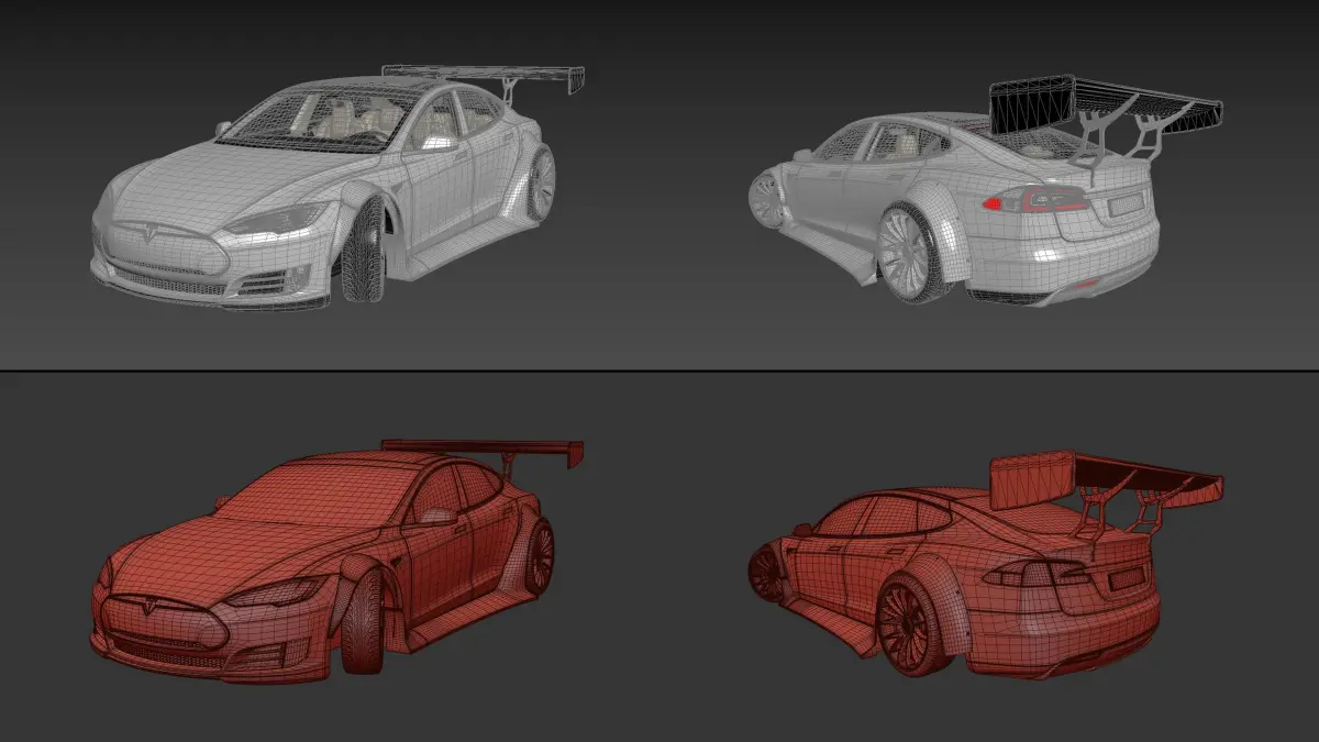 Material Adjustments: All materials used in the model are carefully configured to closely resemble the real-life aesthetics of the tuned Tesla Model S, encompassing customized paint finishes and chrome accents.