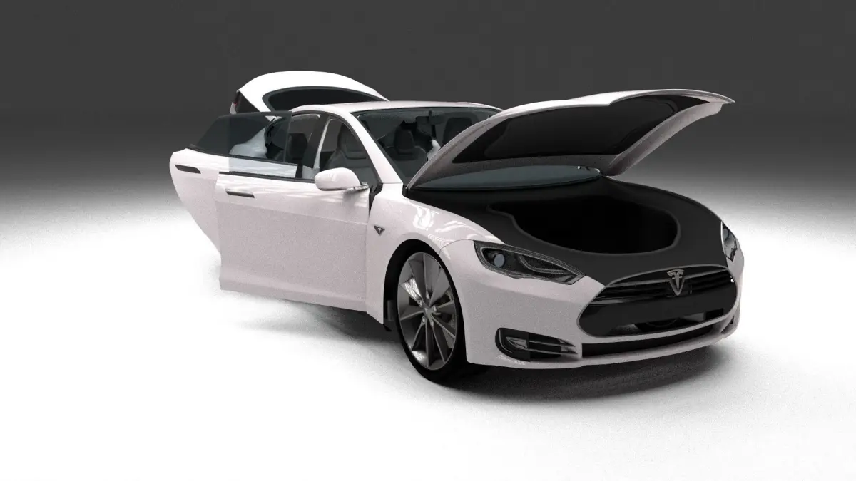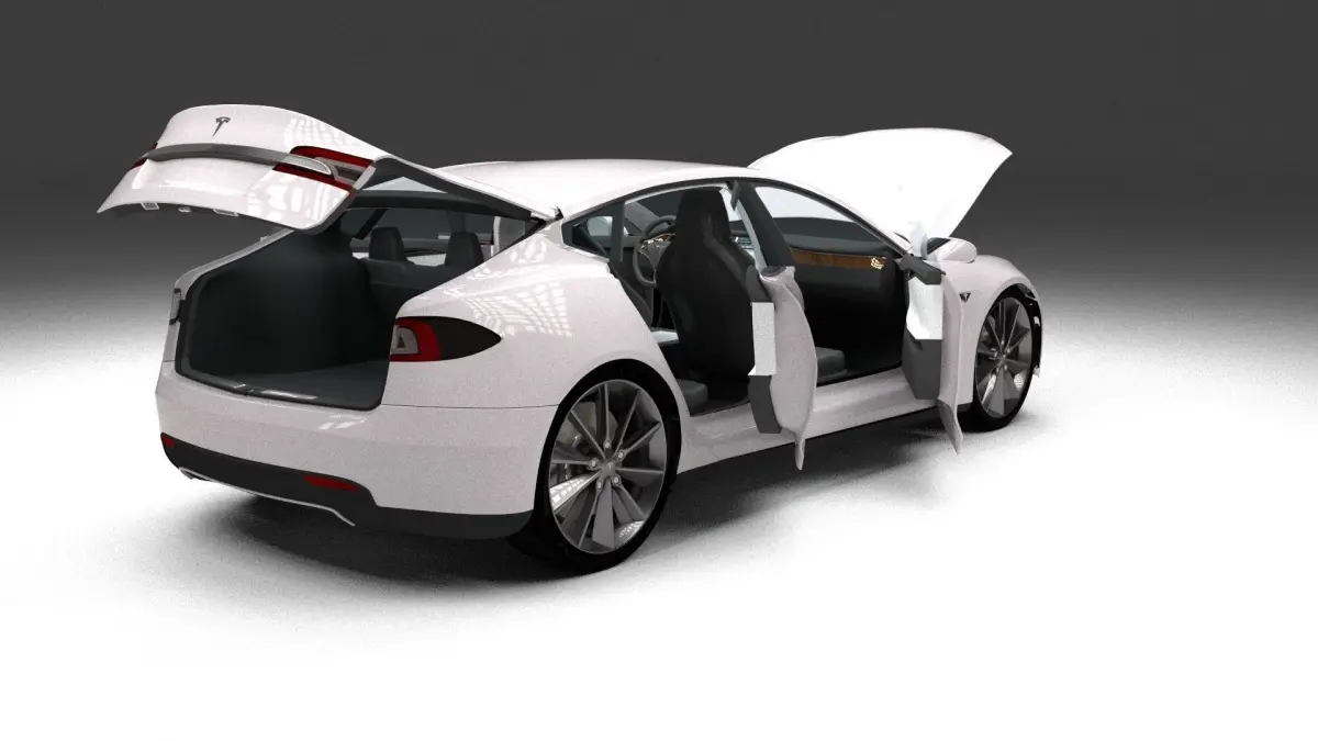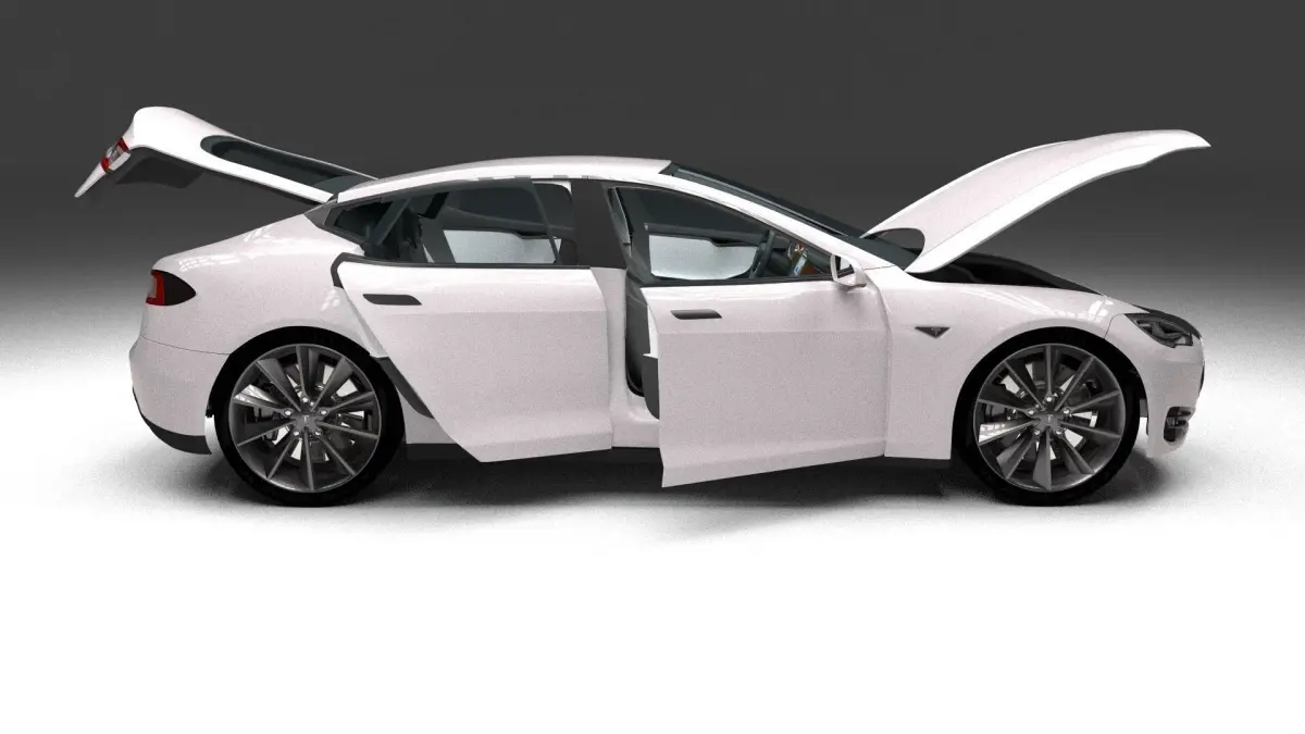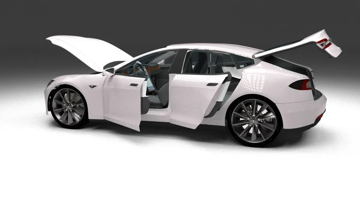 A very accurate model of a Tesla Model S with a HIGHLY DETAILED INTERIOR AND CHASIS, WITH ENGINE, SUSPENSION AND BRAKES MODELED.