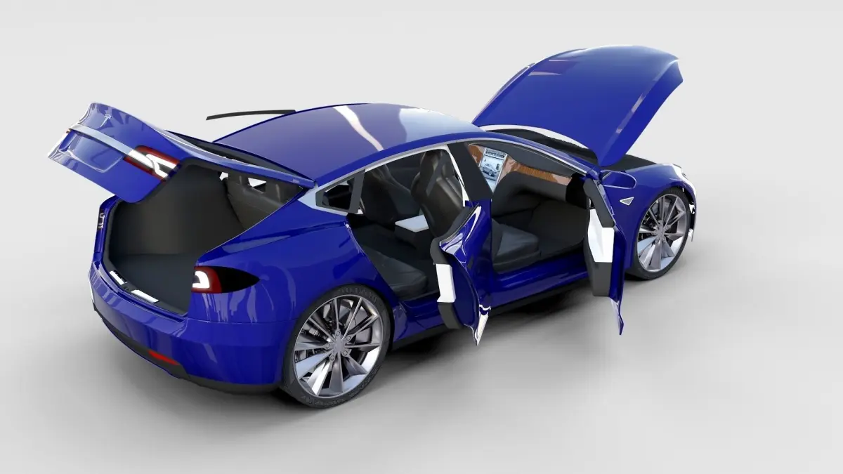 A very accurate model of a Tesla Model S with a HIGHLY DETAILED INTERIOR AND CHASIS, WITH ENGINE, SUSPENSION AND BRAKES MODELED.