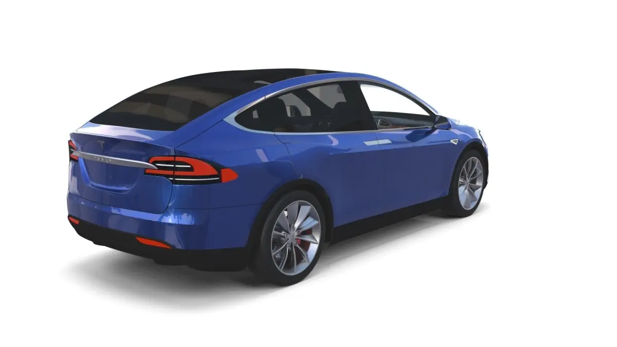 A very accurate model of a Tesla Model X with a HIGHLY DETAILED INTERIOR AND CHASSIS, WITH ENGINE, SUSPENSION AND BRAKES MODELED.