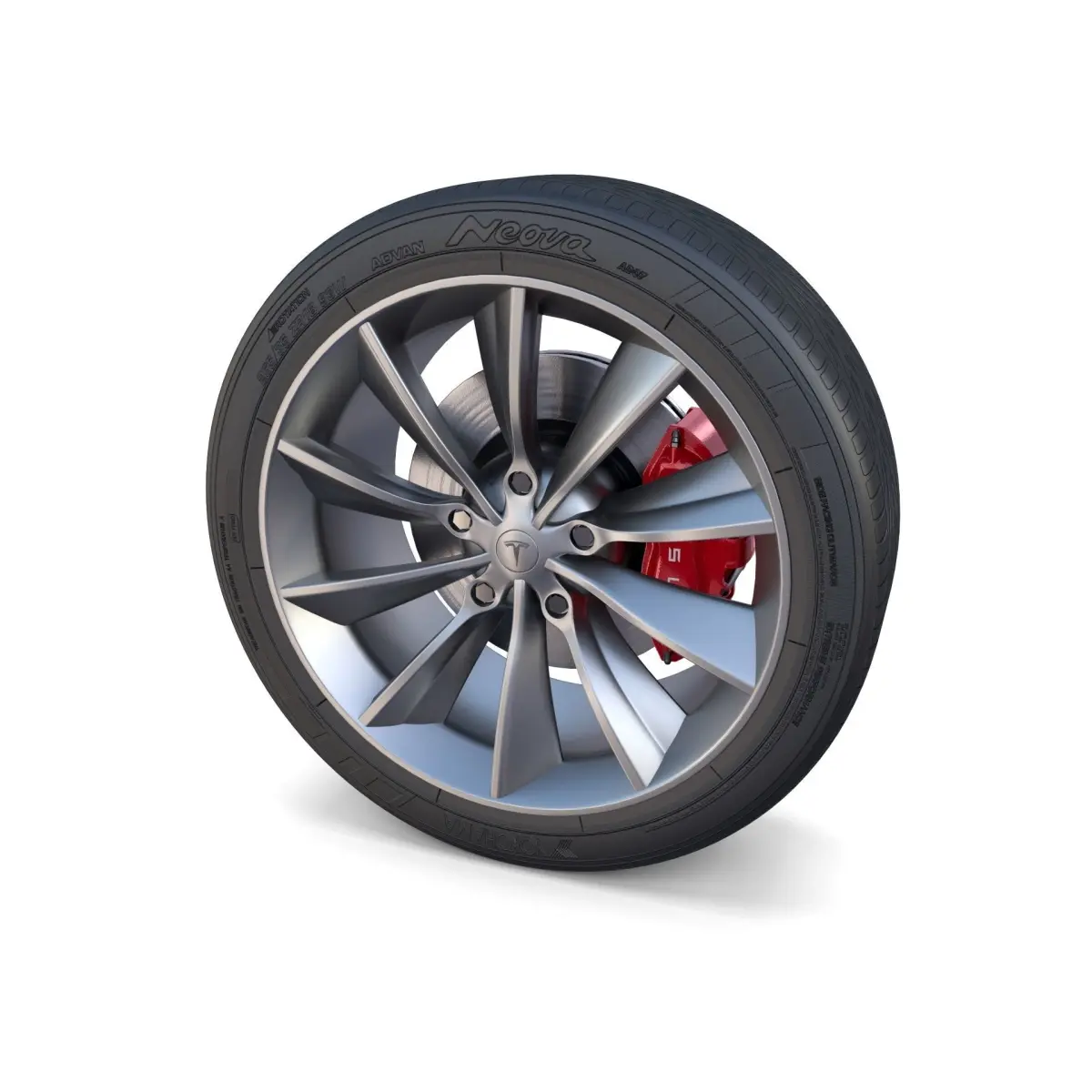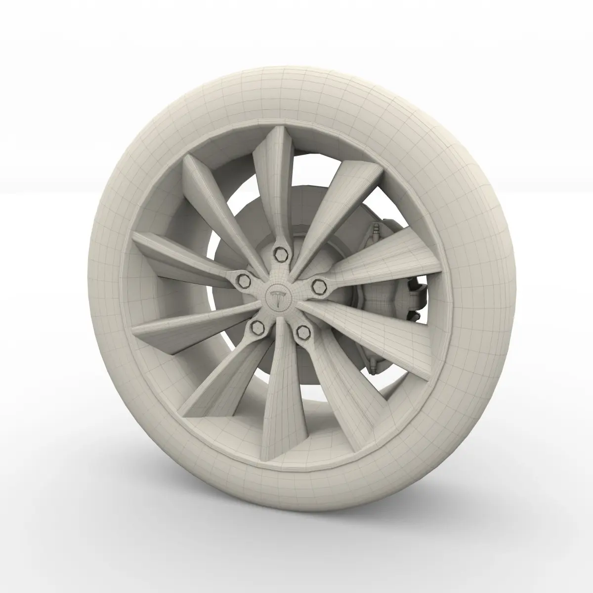 A very accurate model of a Tesla Model X Wheel with Brakes.