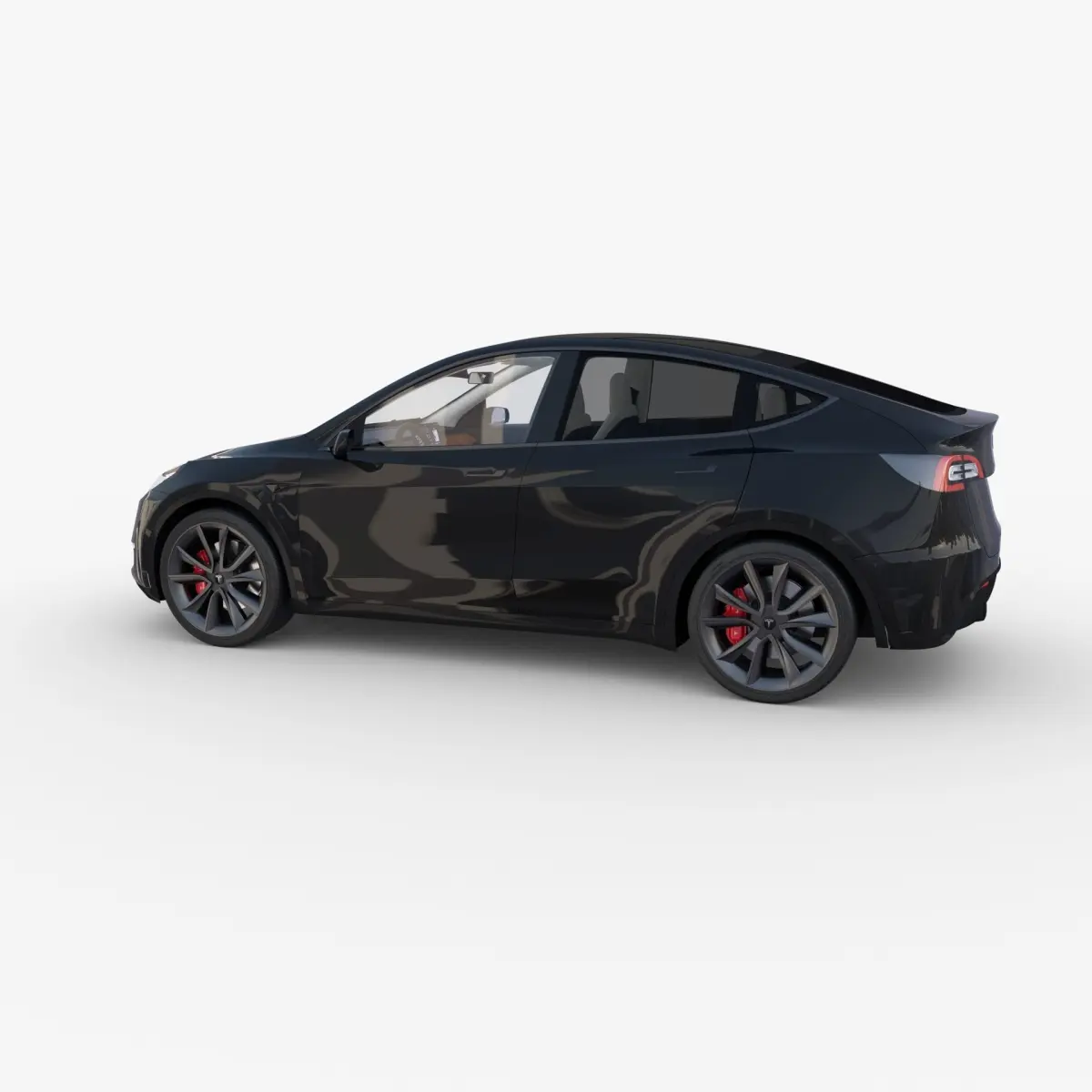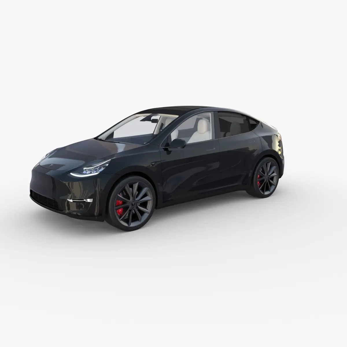 Tesla Model Y AWD with full chassis (battery pack, 2 motor setup, brakes, linkages, suspension, steering) and a detailed interior 3d model rendered with Cycles in Blender, as per seen on attached images.