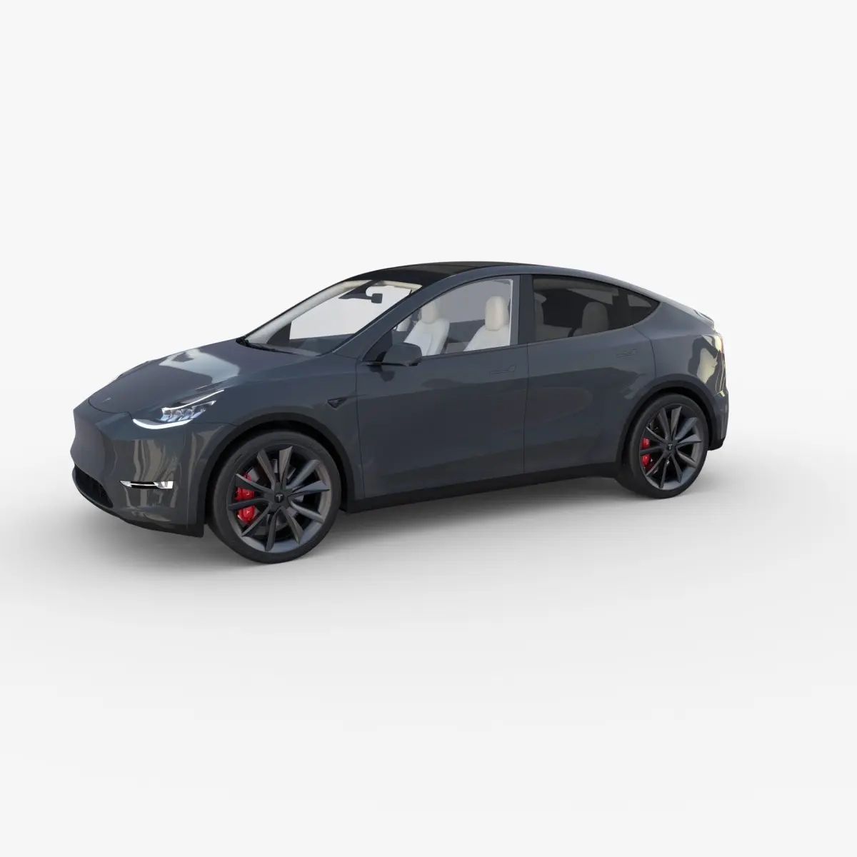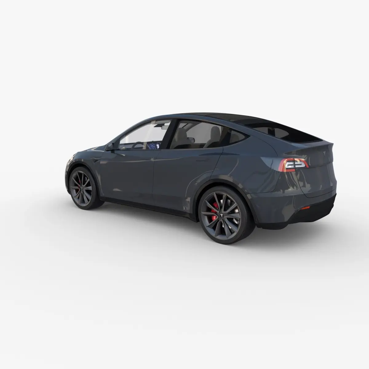 Tesla Model Y AWD with full chassis (battery pack, 2 motor setup, brakes, linkages, suspension, steering) and a detailed interior 3d model rendered with Cycles in Blender, as per seen on attached images.
