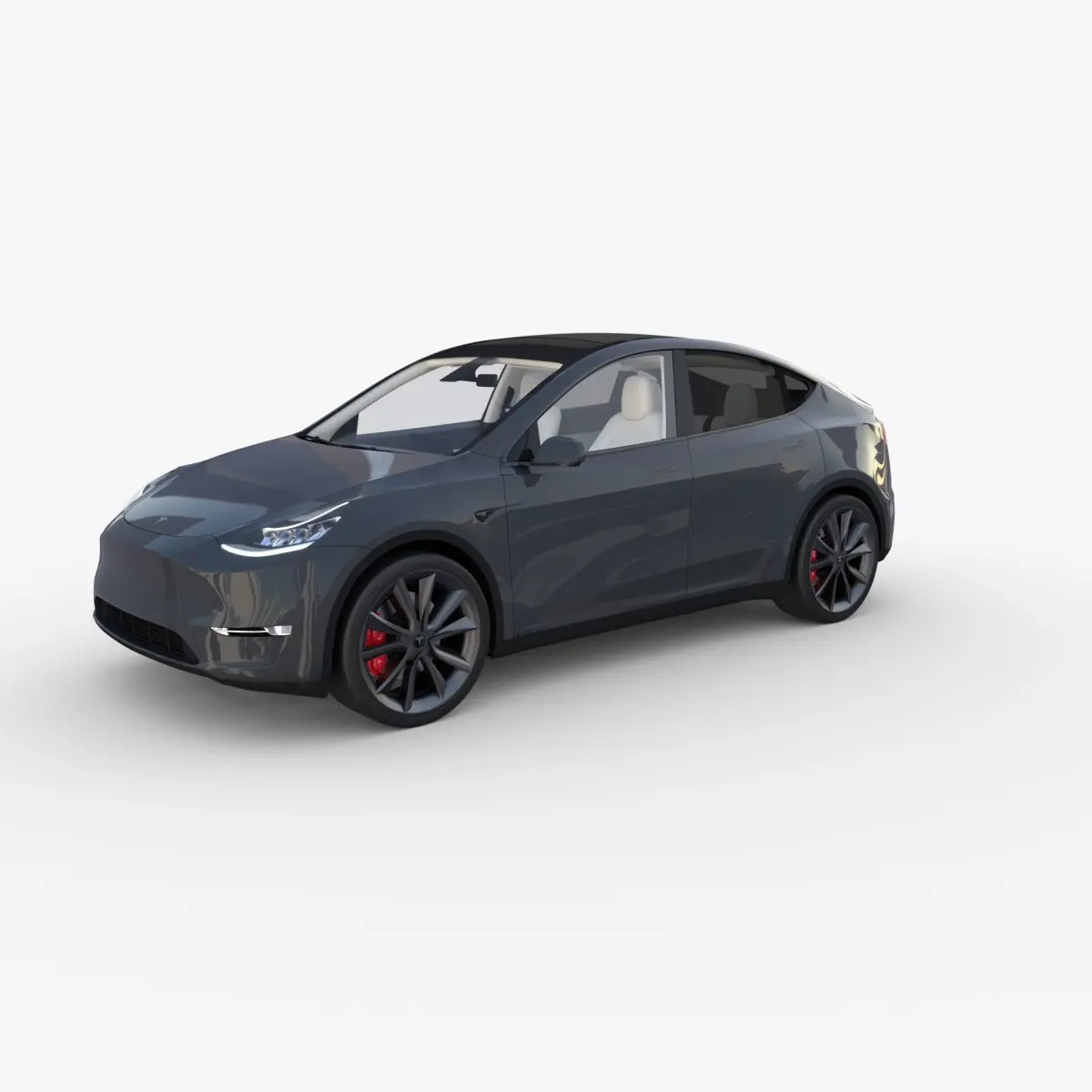 Tesla Model Y RWD with full chassis (battery pack, rear motor setup, brakes, linkages, suspension, steering) and a detailed interior 3d model rendered with Cycles in Blender, as per seen on attached images.