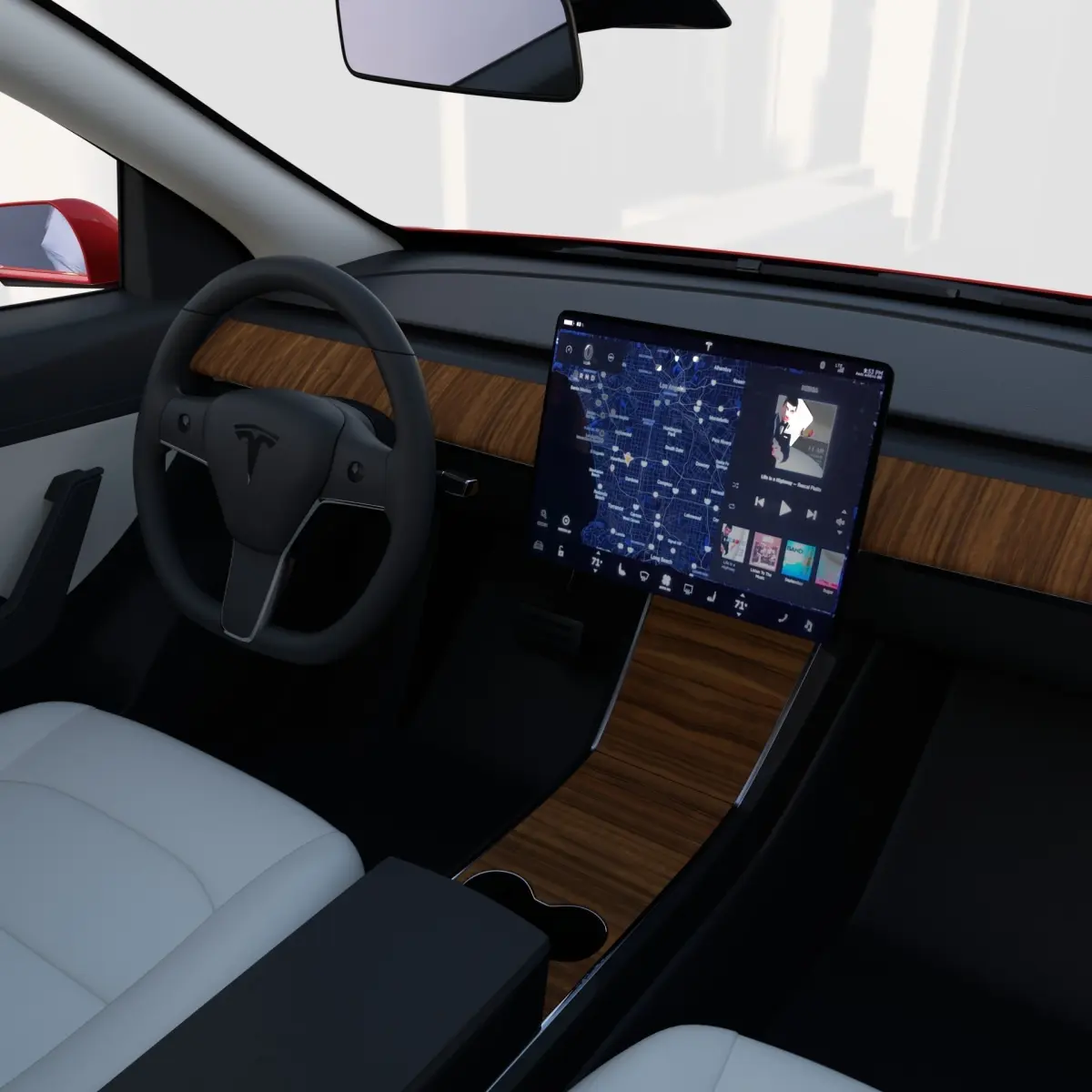 Tesla Model Y RWD with full chassis (battery pack, rear motor setup, brakes, linkages, suspension, steering) and a detailed interior 3d model rendered with Cycles in Blender, as per seen on attached images.