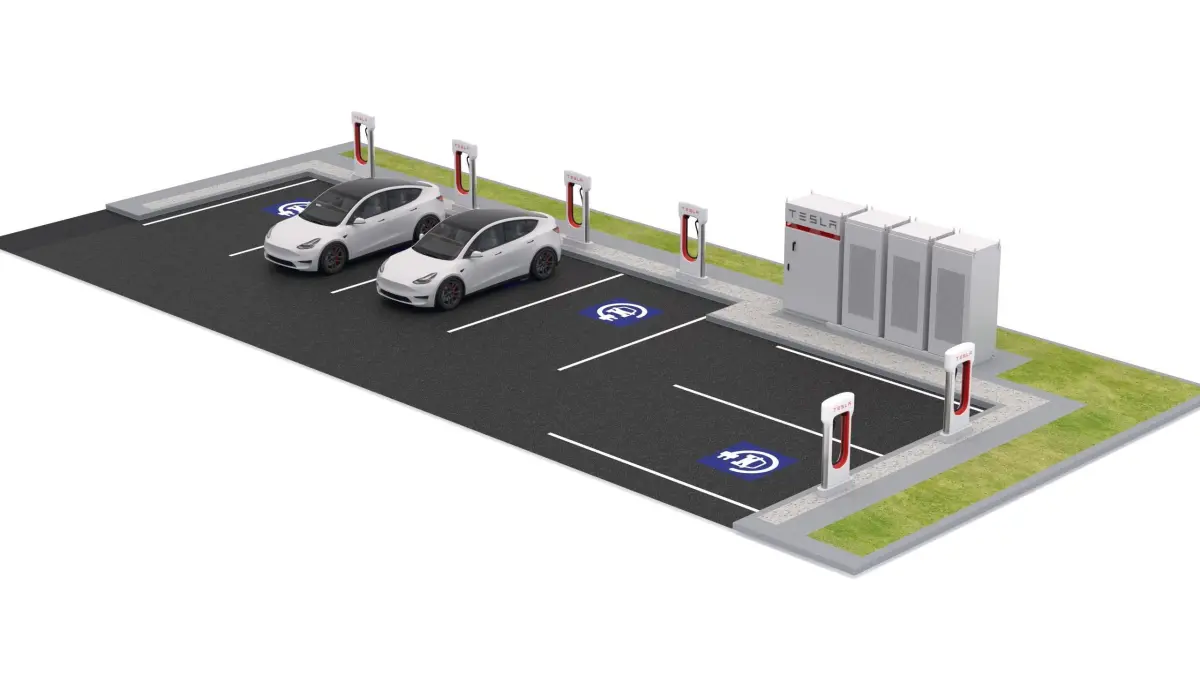 Tesla Supercharger Station with Y 2023Included: