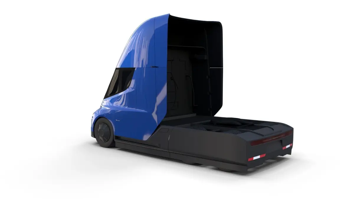 Tesla Semi Truck with full chassis (battery pack, motor setup, brakes, linkages, suspension, steering) 3d model rendered with Cycles in Blender, as per seen on attached images.