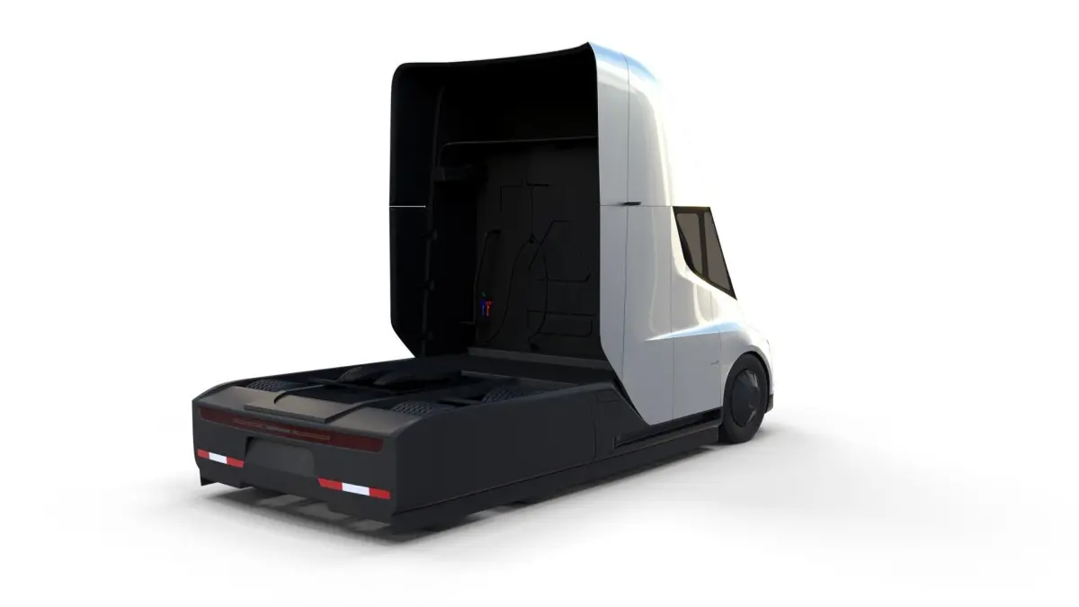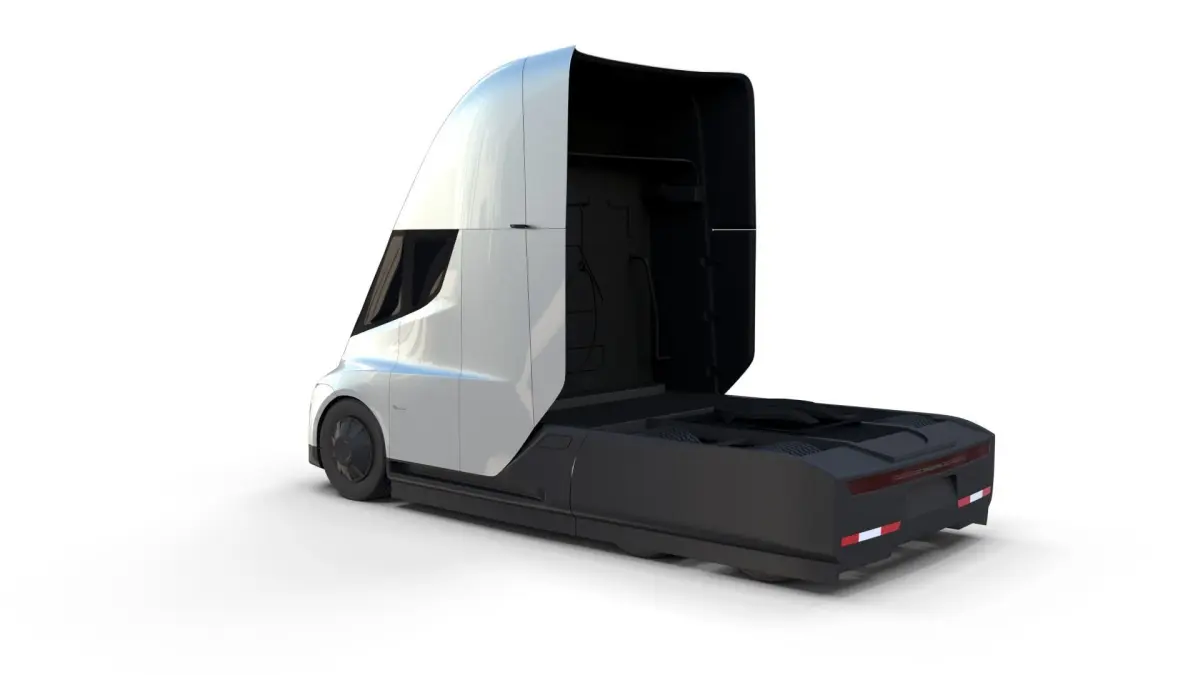 Tesla Semi Truck with full chassis (battery pack, motor setup, brakes, linkages, suspension, steering) 3d model rendered with Cycles in Blender, as per seen on attached images.