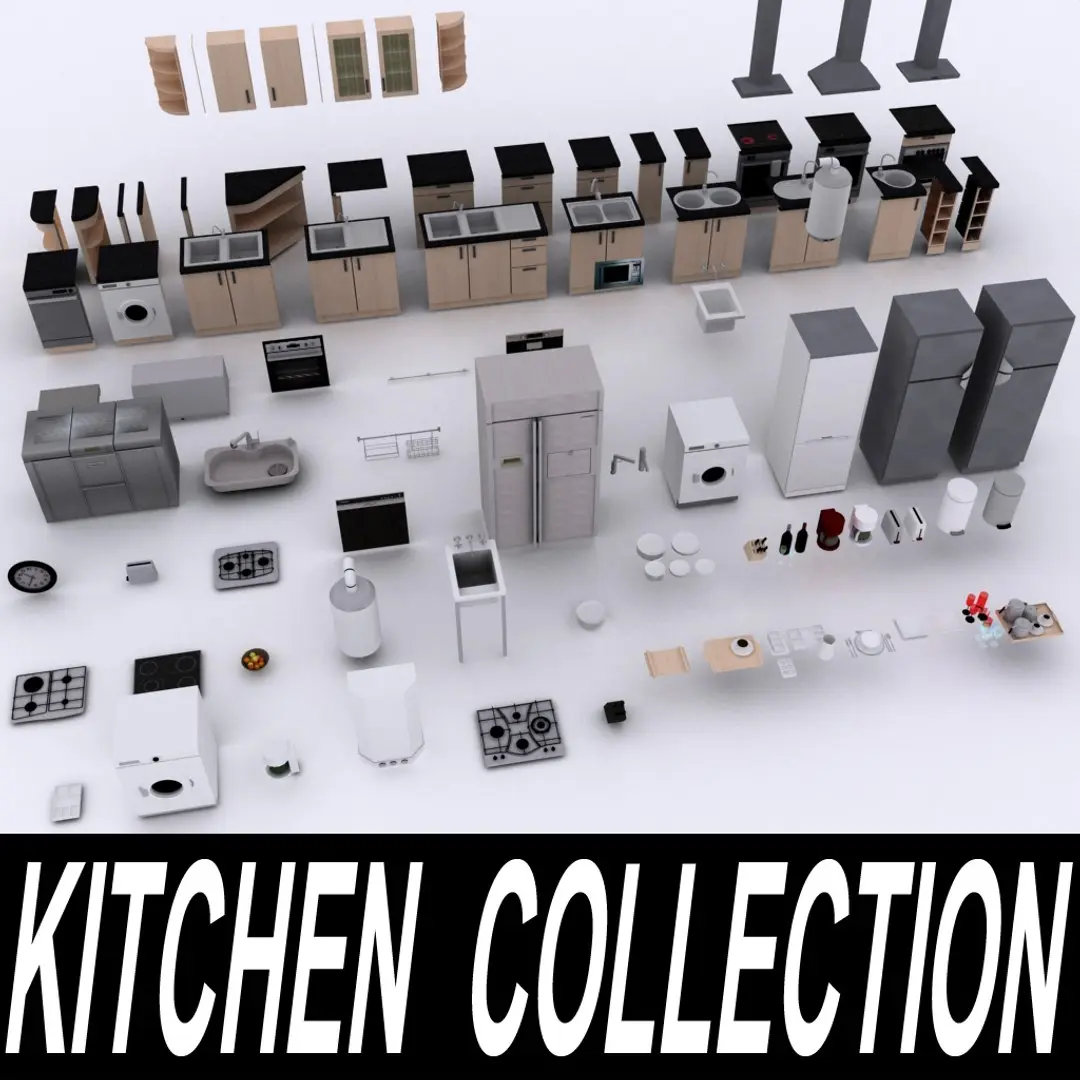 Kitchen Collection - 85 kitchen objects, with all the needed elements including a cabinet construction set, ovens, refrigerators, sinks, and all kind of details like toasters and cutlery. Total 45241 polygons.