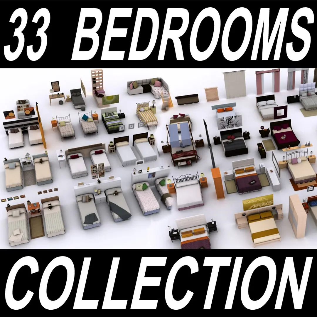 Complete Bedroom Collection - Includes 33 complete double, single and kids bedrooms, with beds, tables, rugs, curtains, lamps, paintings, toys and decoration details. Total 191097 polygons.