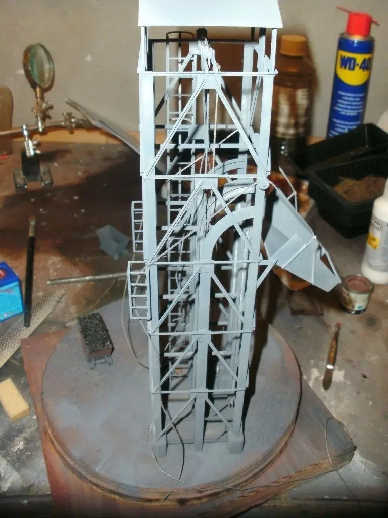This is a coalcrane used in WWII to get the coal from the silo into the trains. I made it for a traindiorama in scale 1/35. All the parts have Dutch names That might make it a bit dificult to find the right parts.