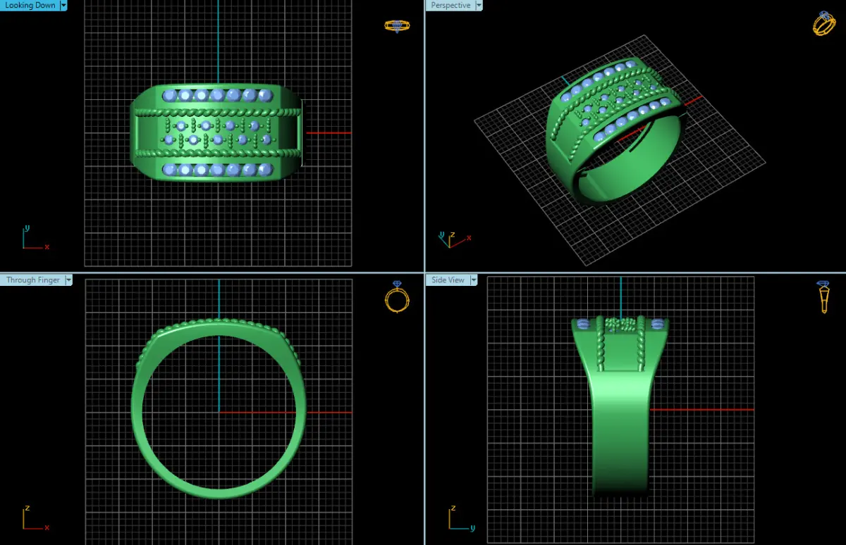 Adding to the ring's allure are rows of meticulously set diamonds, strategically placed to accentuate the textured design. These diamonds, carefully selected for their brilliance and clarity, are set within intricate rope-like detailing, a motif that adds a touch of classic elegance and masculine sophistication. The rope-like detailing, reminiscent of nautical themes and timeless craftsmanship, creates a sense of depth and texture, enhancing the ring's overall aesthetic.