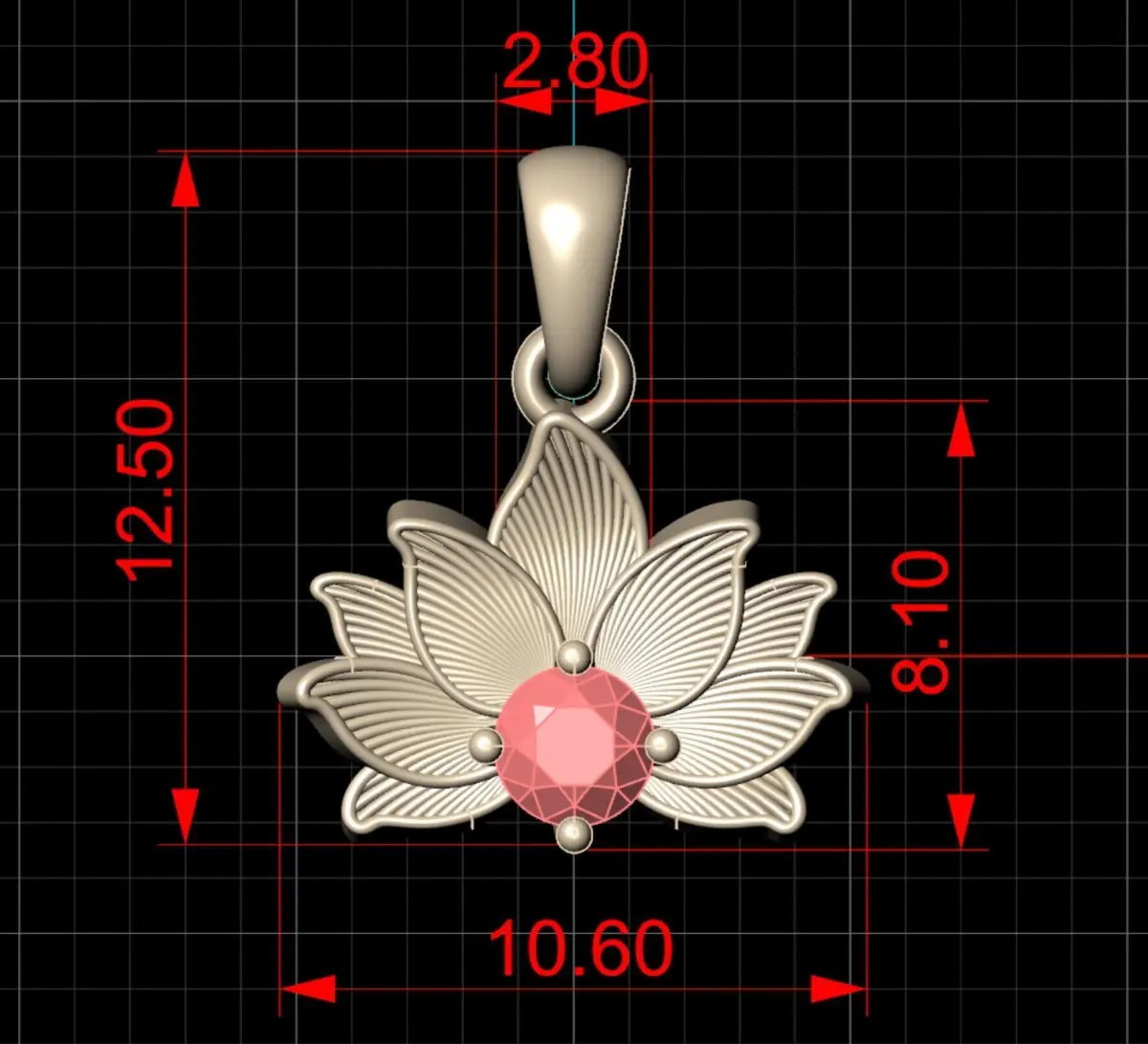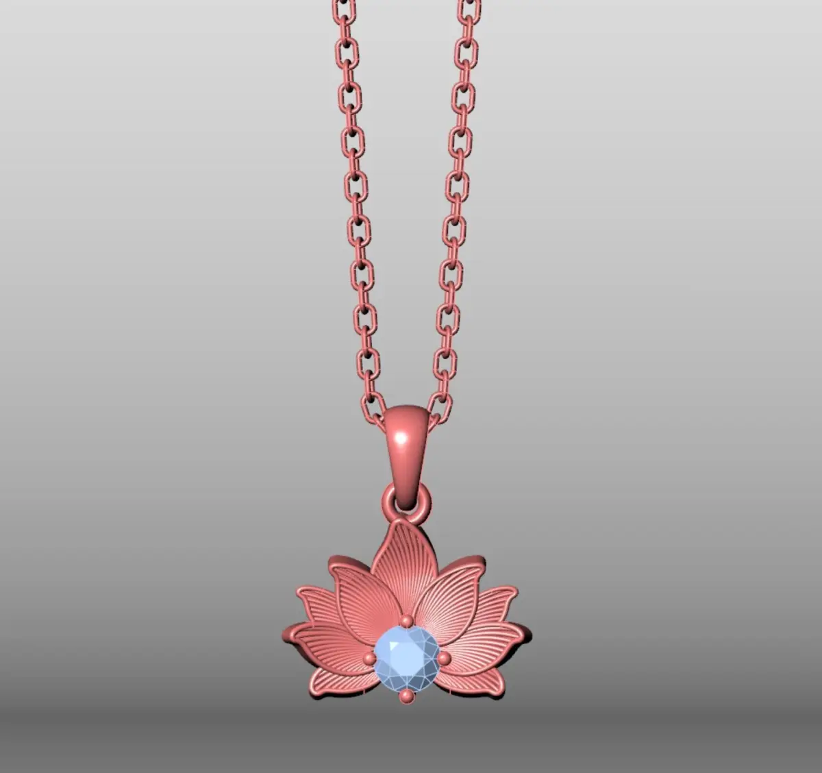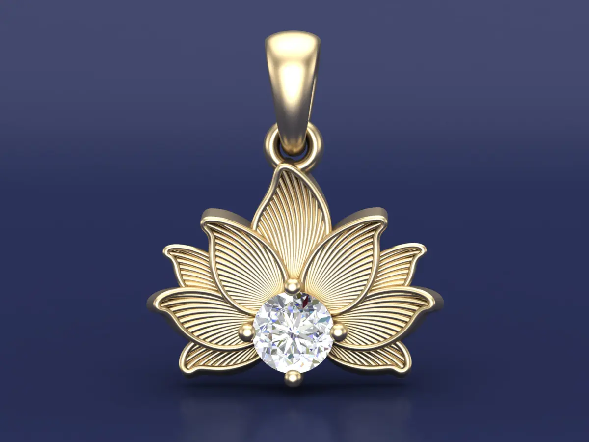 DesignThe pendants are crafted in the shape of a lotus flower, symbolizing purity, beauty, and spirituality.Each pendant features intricate petal detailing, giving it a delicate and luxurious appearance.At the center of each lotus is a brilliant-cut gemstone, likely a diamond or a diamond-like stone, adding sparkle and sophistication.