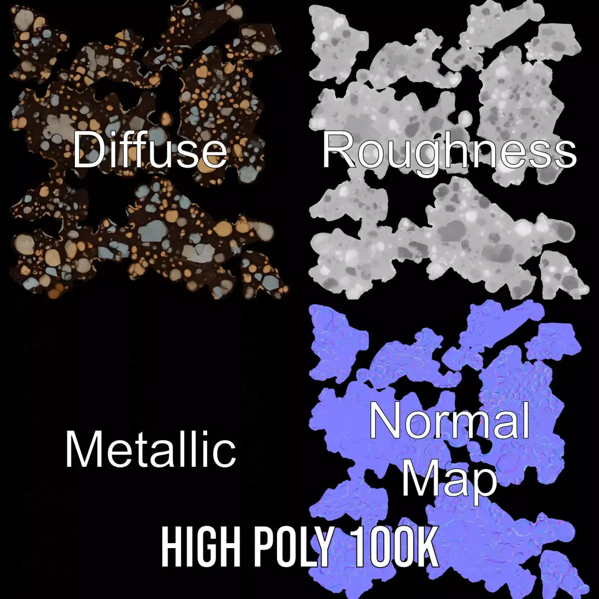 The model's textures are PBR, Diffuse, NormalMap, and reflection/roughness/metallic, which are suitable for any modern rendering engine. All models are accurately unwrapped and have no overlapping UVs.