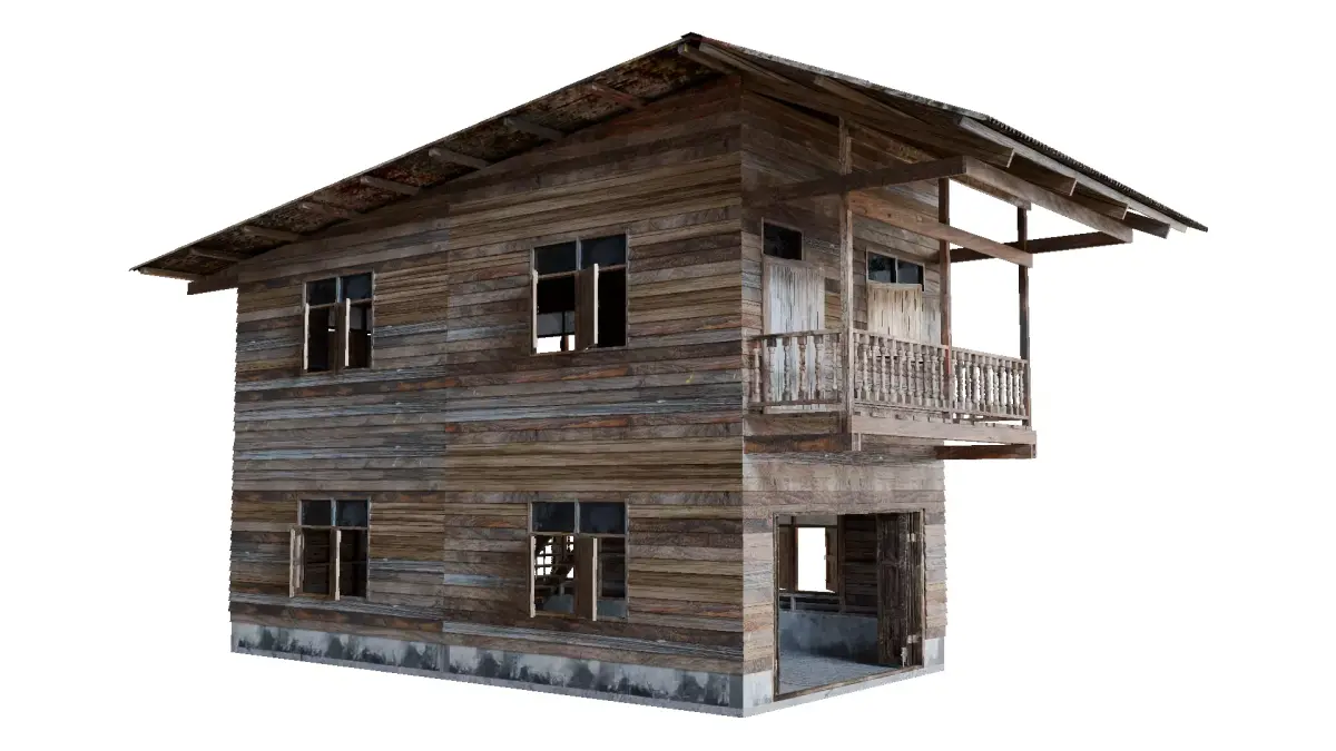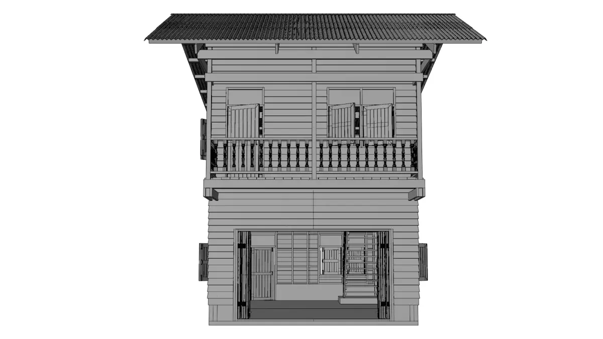 A 90s style Thai wooden house, suitable for use as a prop or scene.