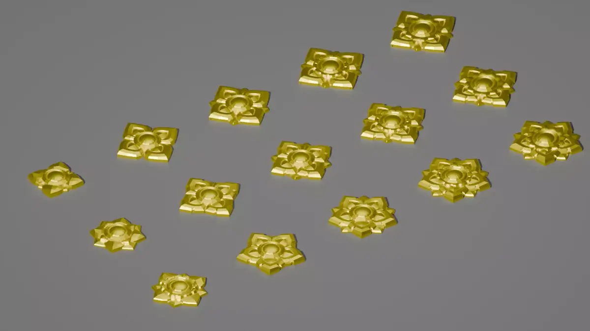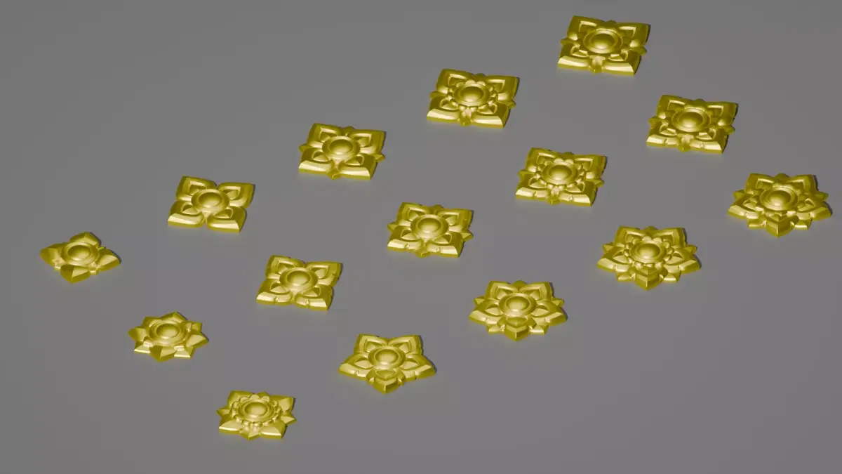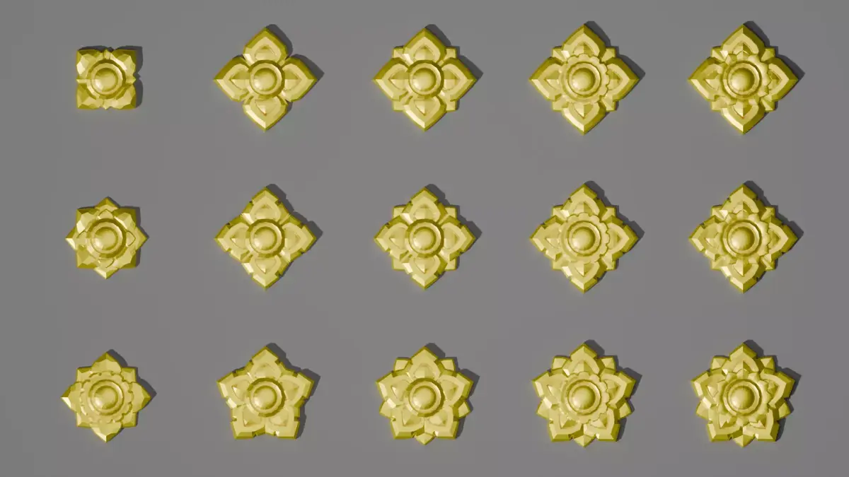This is a high-quality 3D model pack of Thai Floral Ornaments (Lotus-inspired decorative patterns).