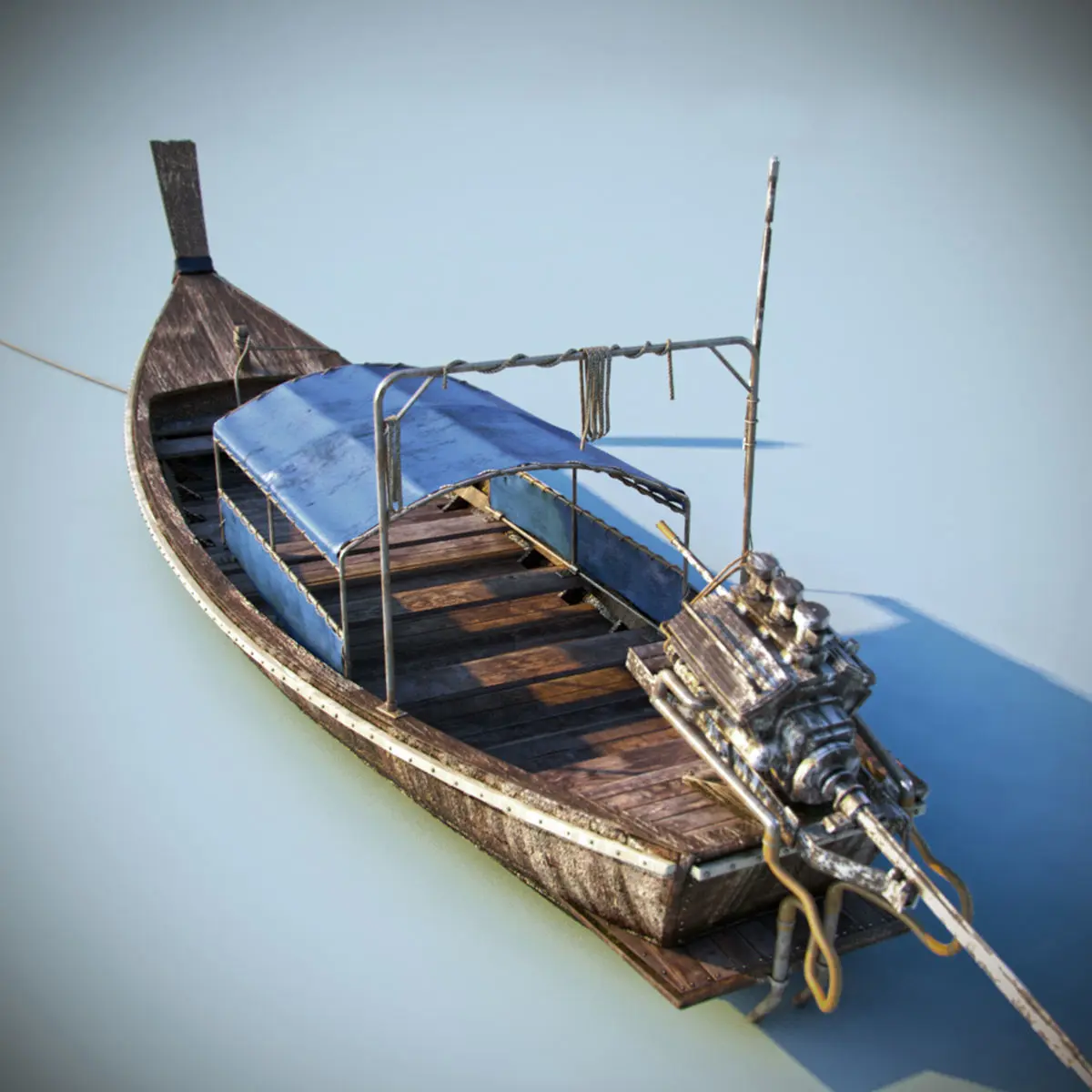 Very high detailed 3d model of a Asian/Thailand long tail boatDetailed enough for your close-up rendersDifferent formats are availableIncluded are textures, standard materials in Max file and V-Ray and standard materials in the archives..Models are in real world scale in centimetersImages were rendered in V-Ray renderer