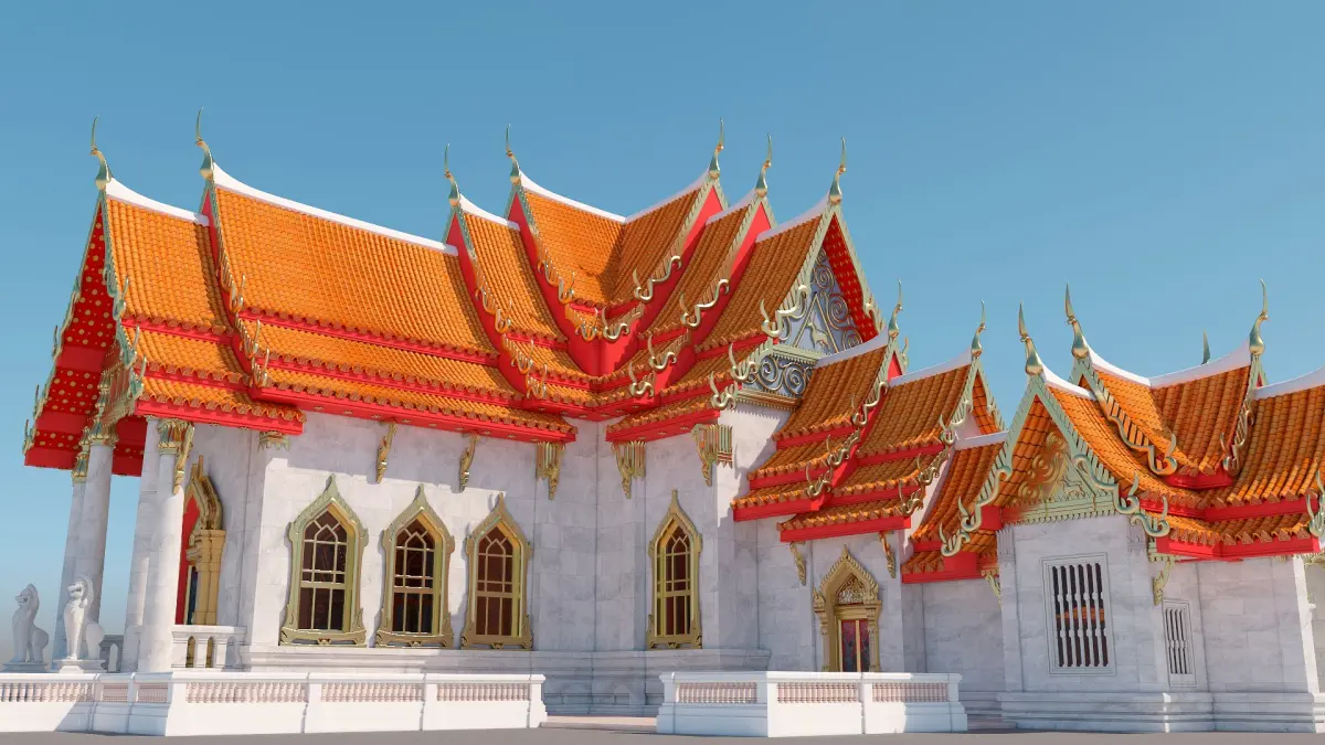 Realistic 3d model of famous Bangkok temple Wat Benchamabophit.