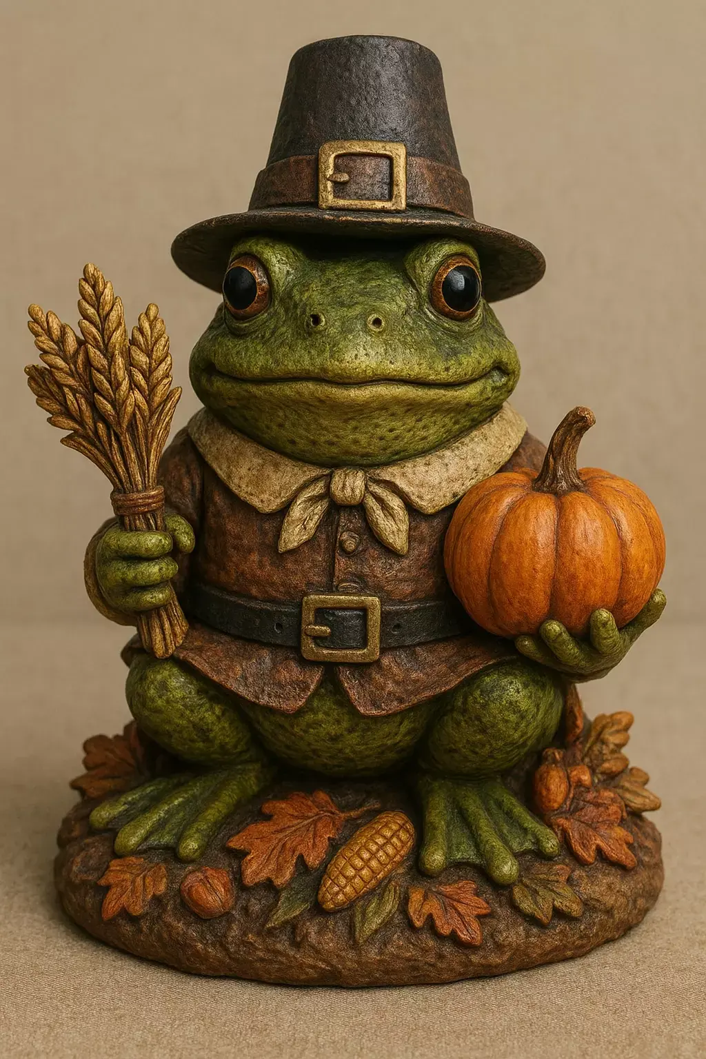 Add a touch of cozy humor and harvest magic to your holiday display with this Thanksgiving Frog Pilgrim — a symbol of joy, gratitude, and fall charm.
