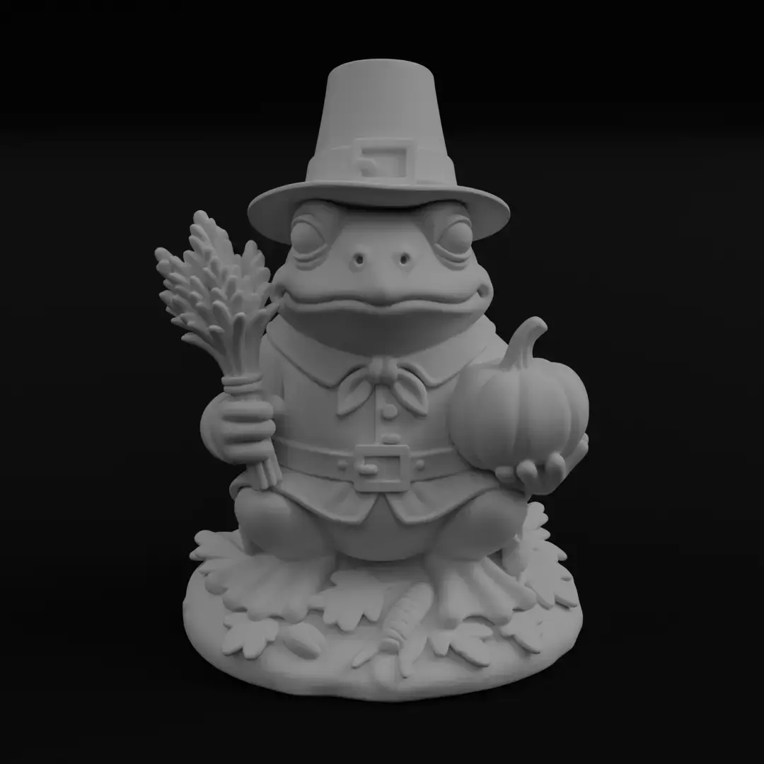 Celebrate the spirit of gratitude and harvest with this charming Frog Pilgrim figurine! Dressed in classic pilgrim attire, this delightful amphibian holds a small pumpkin and a bundle of wheat — symbols of abundance and Thanksgiving joy.