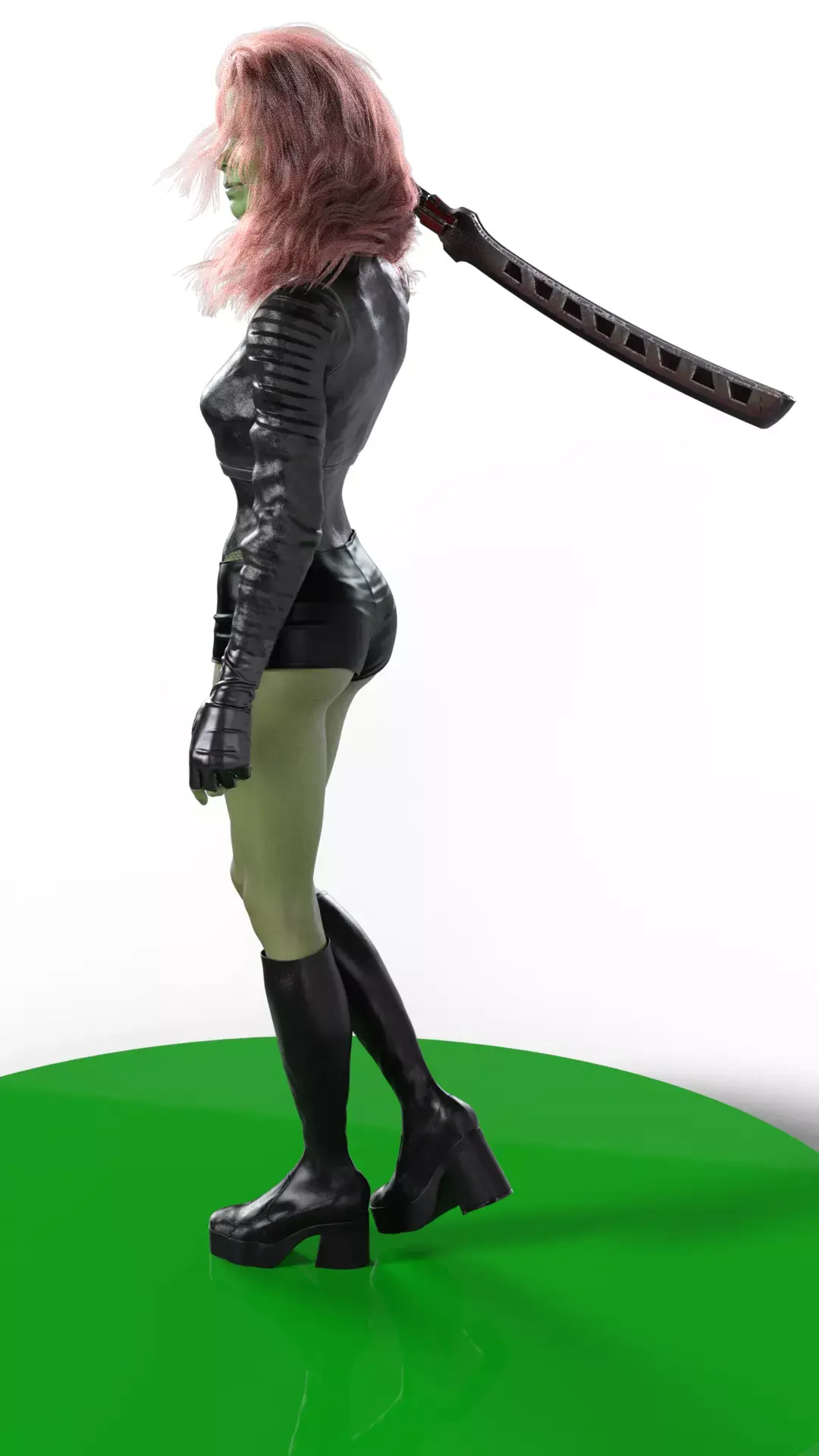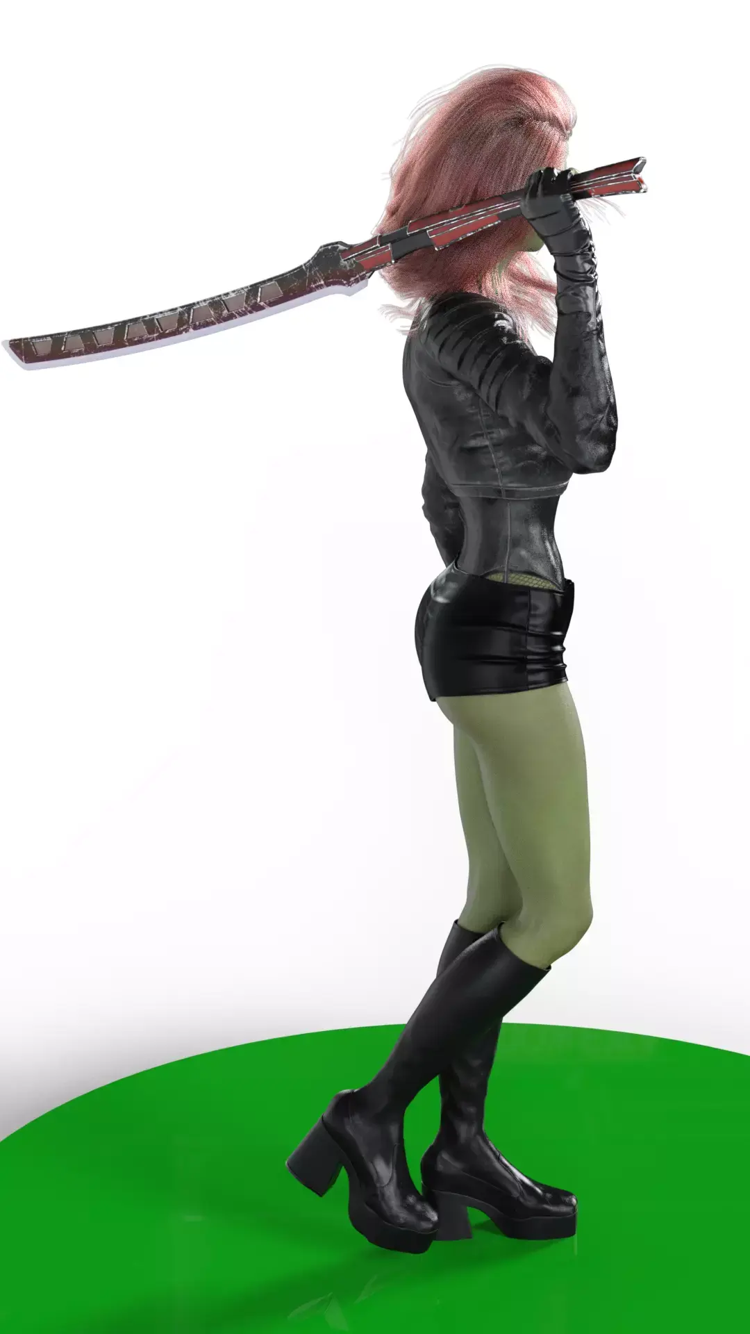 FBX (Filmbox): For animation and importing into game engines, maintaining rigging and material groups.OBJ (Wavefront Object): Universal mesh format, ideal for static rendering and modeling.STL (Stereolithography): The standard format for 3D printing. The file may be optimized to capture the detail of the leather texture and hair.Important Note for 3D Printing:Texture Detail: The use of resin printers (SLA/DLP) is highly recommended to preserve the fine details of the leather jacket texture and the hair strands. Ensure proper support placement for the sword and hands.