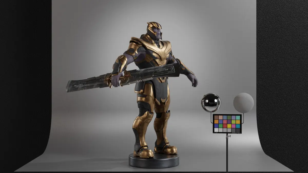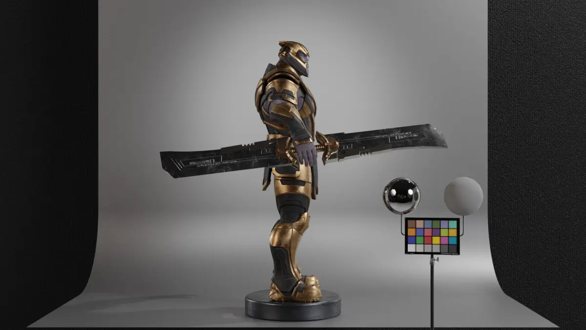 Iconic Dual Blade – Includes Thanos’ signature weapon, modeled with MCU-level accuracy.The double-edged blade features intricate design details, perfect for close-up renders and action scenes.