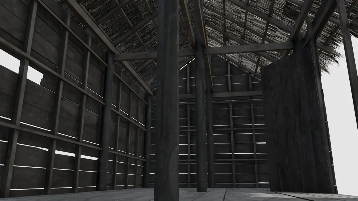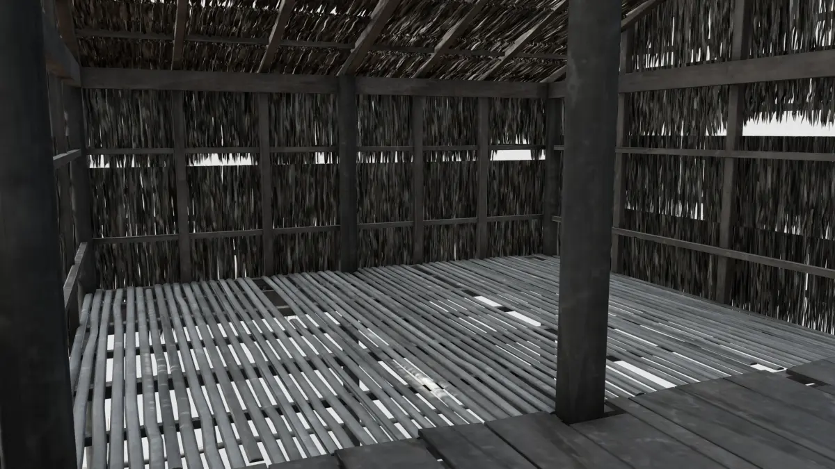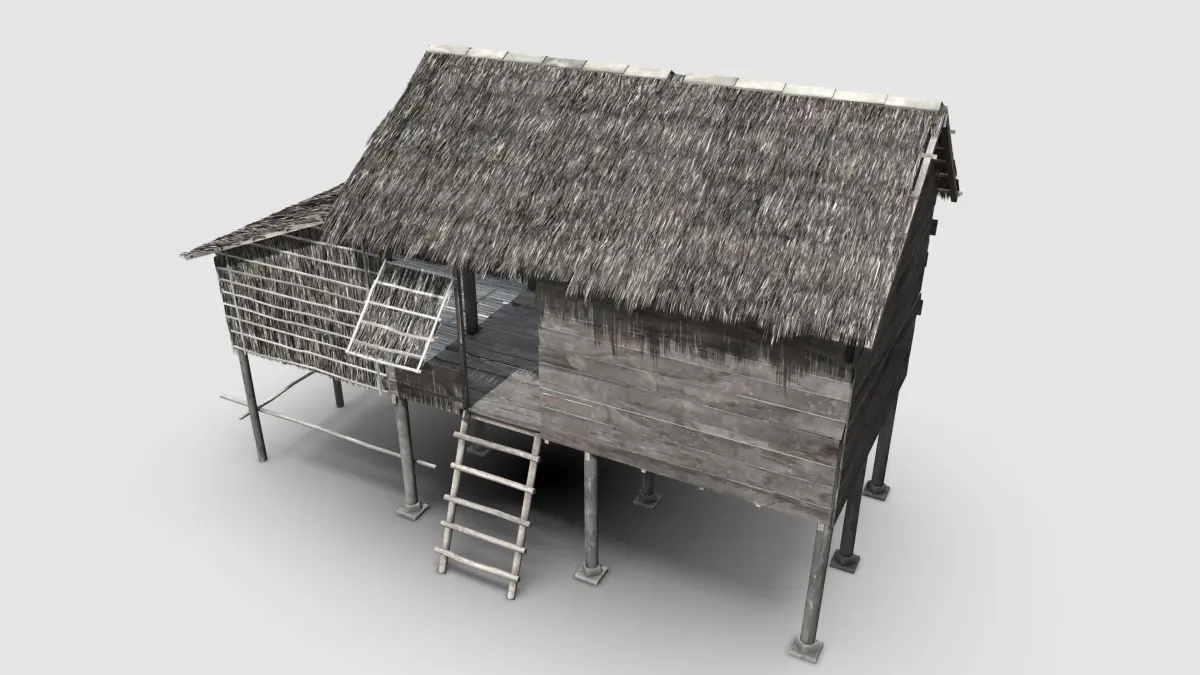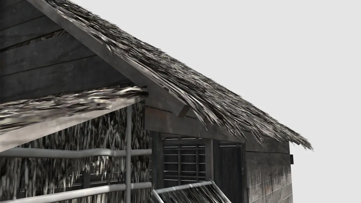Thatch hut built with wood, bamboo, and thatch. This is high polygon 3d model.