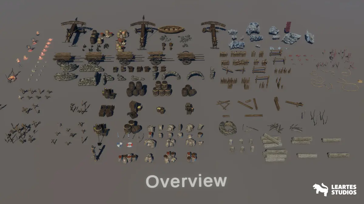 Props: Barrels, Ballistas, Bonfires, Bottles, Candles, Carriages, Rocks, Fences, Guts, Sacks etc.. [Resolution 2048x] [Base Color, Normal, Roughness, Opacity, AO, Metalic]