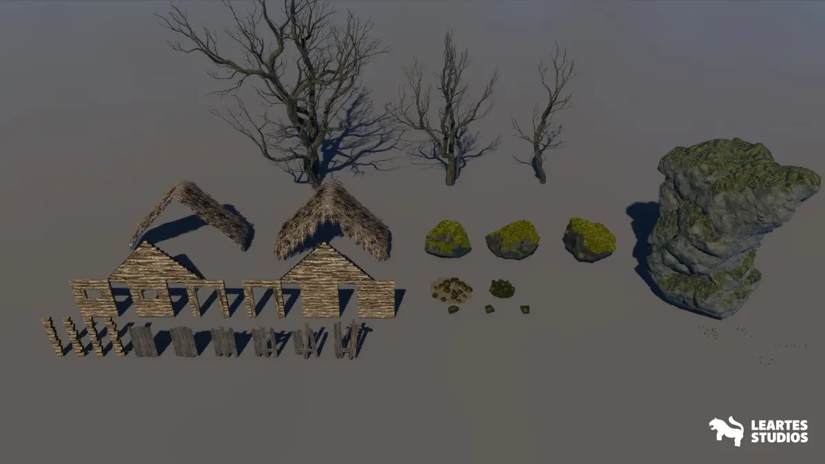 The Aftermath Environment with 293 Unique Meshes. Including all showcased and high-quality assets. With a good level of detail and optimized for Game Ready Projects.As midnight draped its inky cloak over the village, the full moon bled an icy luminescence onto the skeletal rooftops. Wind, the sole restless sentinel, howled through shattered windowpanes, weaving sorrowful moans among the hollow houses. A silhouette, cloaked in the hush of the night, stepped across the overgrown threshold, boots kicking up whispers of dust where forgotten laughter once danced. Each creak of a floorboard, each rustle of unseen leaves, was a whispered dare thrown at the face of the unknown. In this village, where moonlight carved shadows into phantoms, a dance of courage and curiosity was about to unfold, etched not on moonlit stone but on the canvas of a heart unafraid to defy the whispers of the wind.Creative Direction by Leartes Team, Environment made by talented Artist “Lucas Henrique”If you want to populate your game environments or any kind of Virtual Production levels here is the pack you get and use to get high-quality visuals and well-optimized assets.