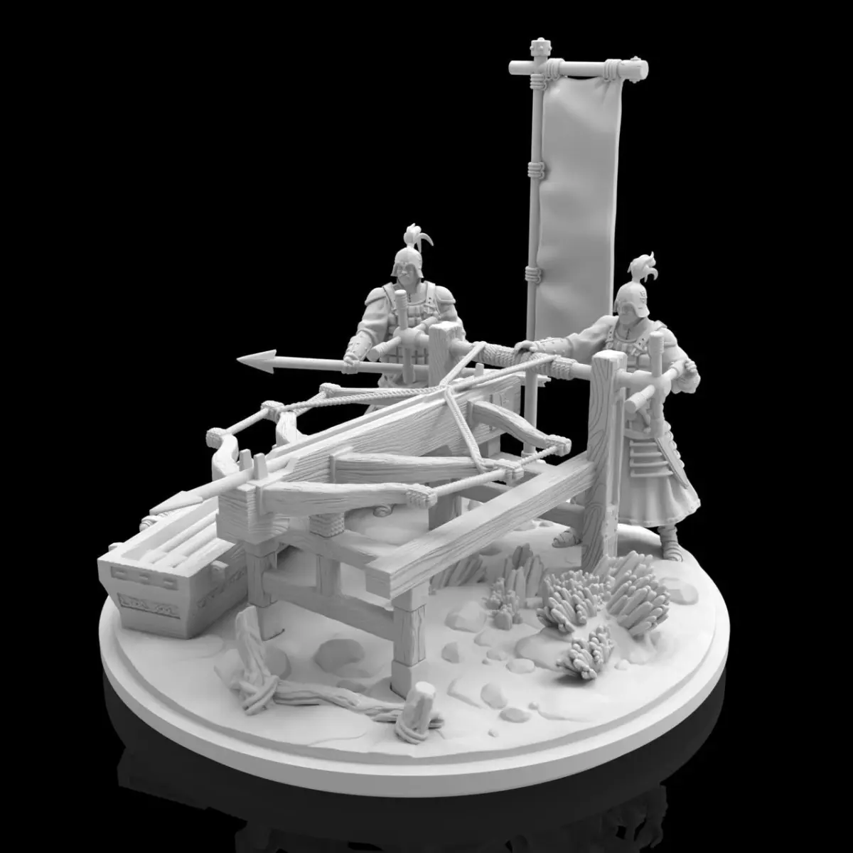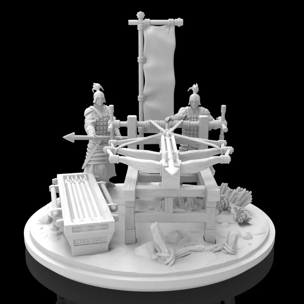 The crossbow car is a mobile weapon platform that consists of a wooden cart or frame mounted with one or more crossbows. The crossbows are designed to shoot multiple arrows in quick succession, making them highly effective against both infantry and cavalry. The weapon is operated by a team of soldiers who can move it around the battlefield and fire it from a distance.