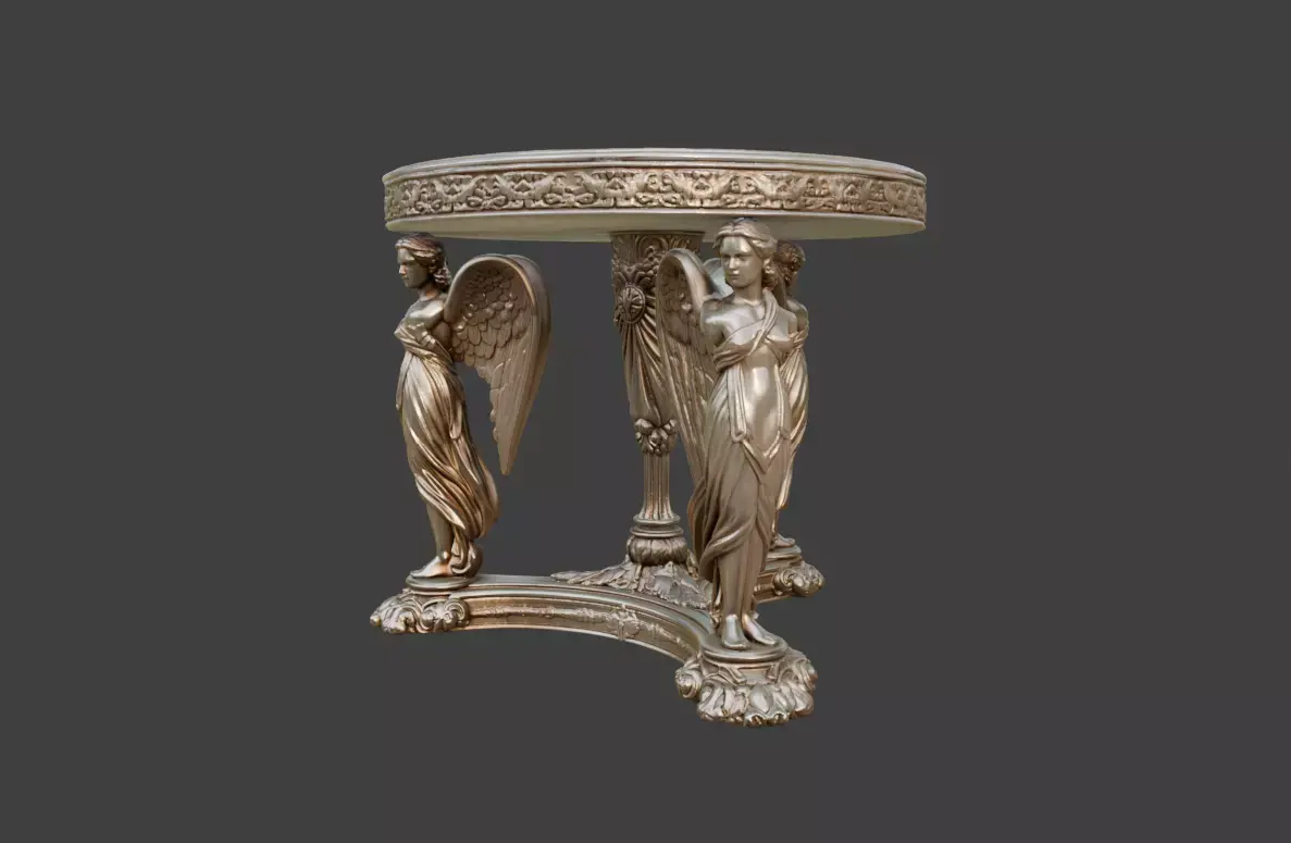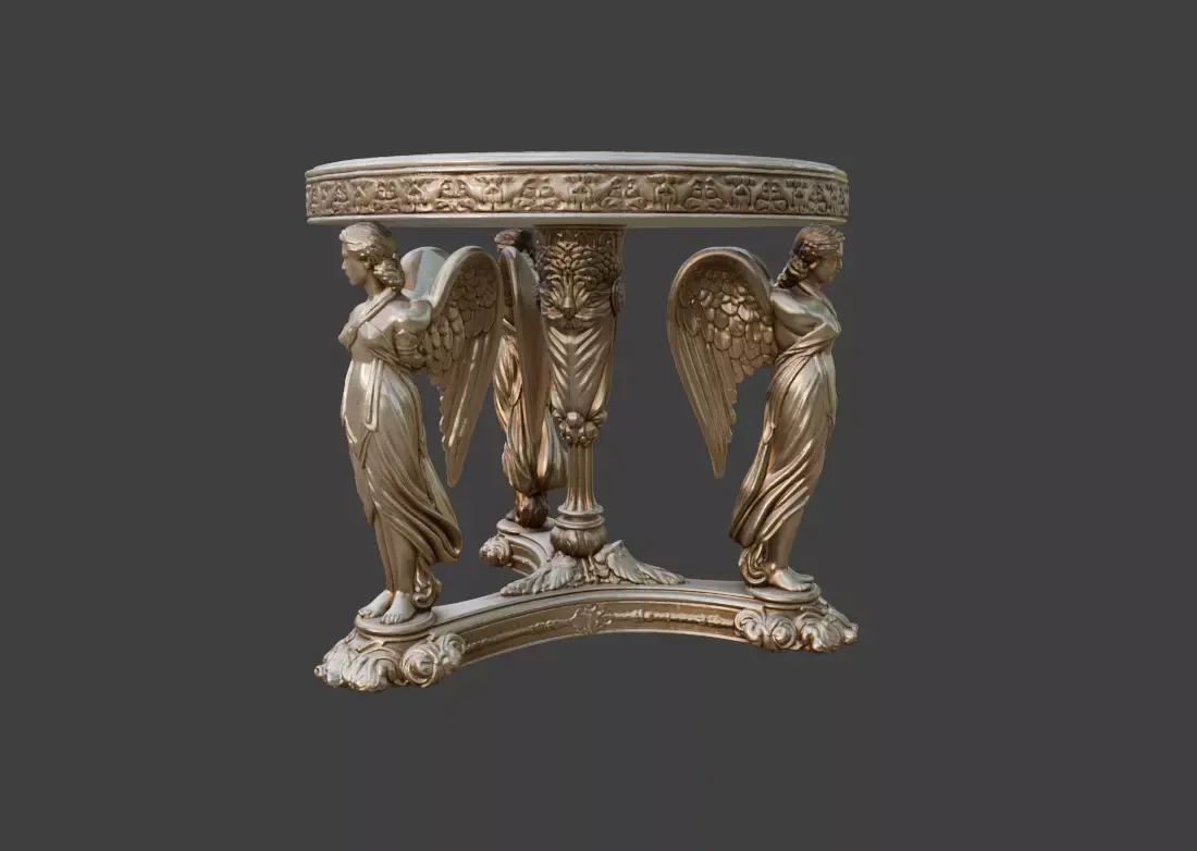 The Angelic Round Table is a highly decorative ornamental furniture piece inspired by classical European craftsmanship, Renaissance sculpture, and baroque architectural elegance. This luxurious round table blends sculptural artistry with functional furniture design, creating a striking centerpiece suitable for fantasy environments, historical interiors, and cinematic visualizations.