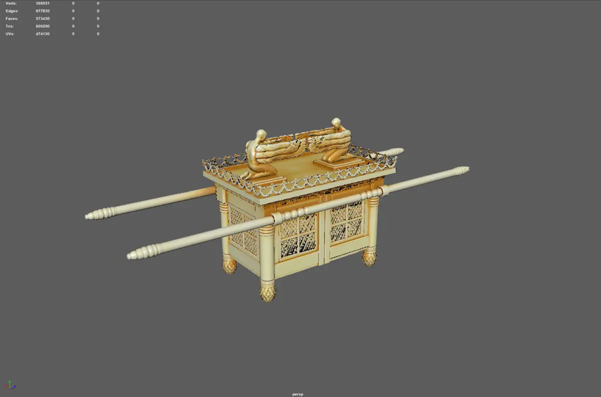 This is a highly detailed and accurately modeled 3D representation of the Ark of the Covenant, based on historical and biblical references. The Ark is a sacred chest described in the Bible, traditionally believed to hold the stone tablets of the Ten Commandments. This model is designed for high-end visual projects, including film, animation, games, and 3D printing.