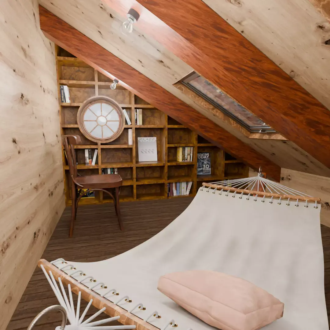 An attic space that's both intellectual and serene.Why not create the setting for your story with this “Attic Room with Large Bookshelves” 3D model?