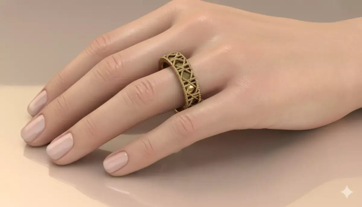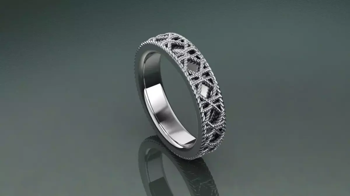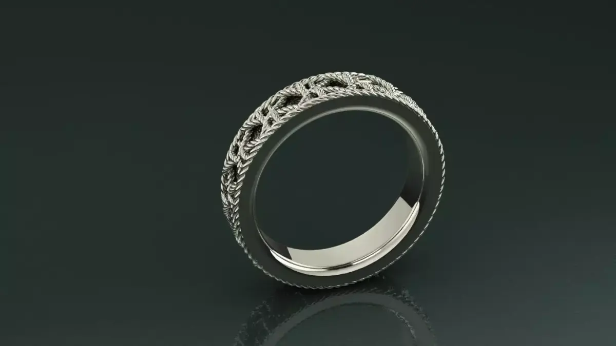 Inspired by the timeless strength of woven fibers, The Aurelian Knot is a masterwork of architectural jewelry. This band features a continuous, open-work lattice, crafted to resemble braided rope or silk cord.