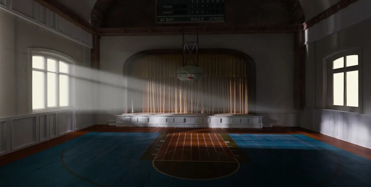 The Backyard GymFor this environment i took inspiration from TALES FROM THE LOOP. The scene takes place inside an empty gym, lit by the only light of the pale sun light at dusk. The grabs are taken within the Blener project, from the camera view. No color / post added. HDRI / textures / proprs and my settings of the Anamorphic camera are included in the projects. Exchange files: Obj, Fbx, Dae. Textures collected inside a folder.